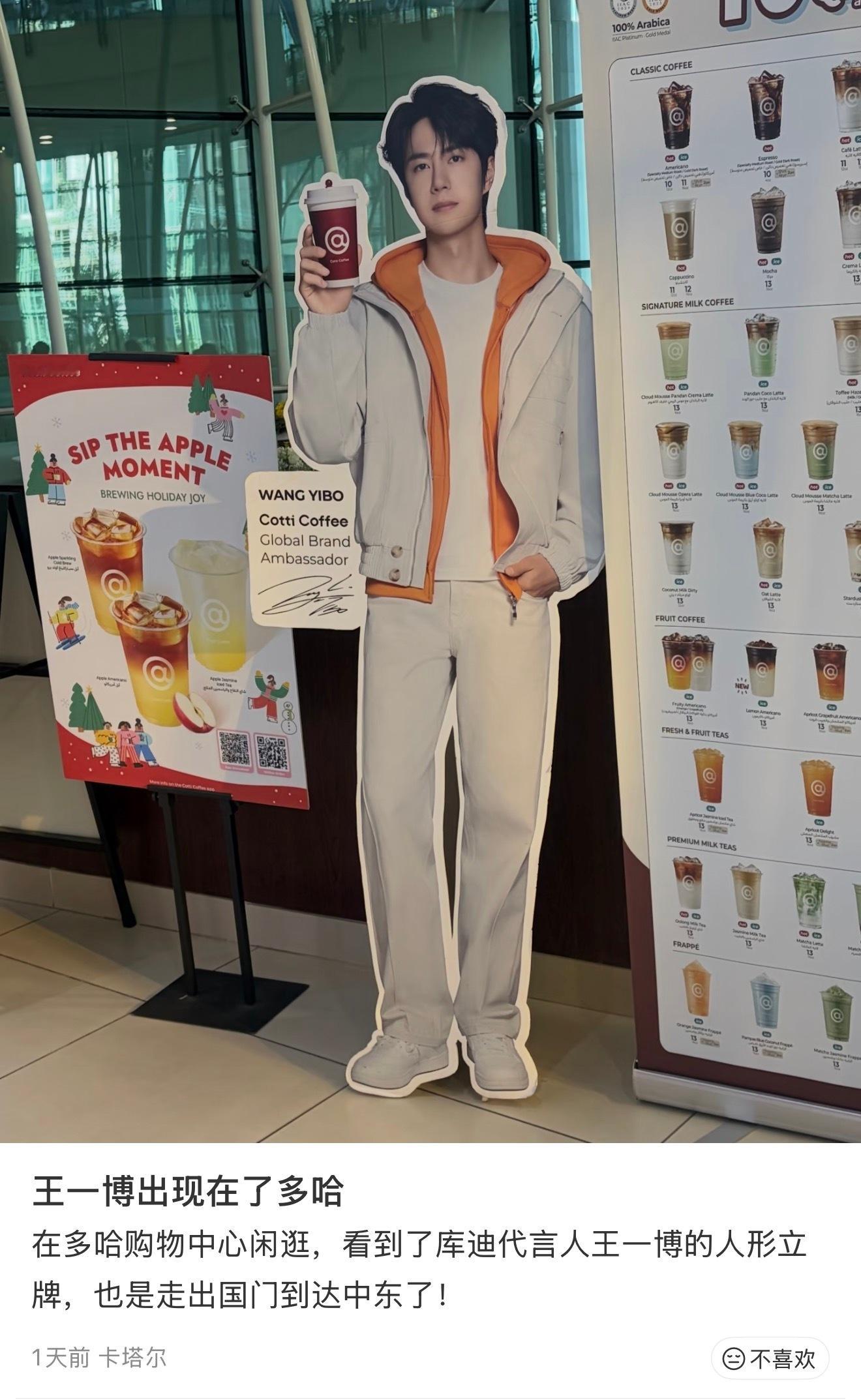 王一博的帅气立牌也跟着电影热烈出海卡塔尔了 外宣门面