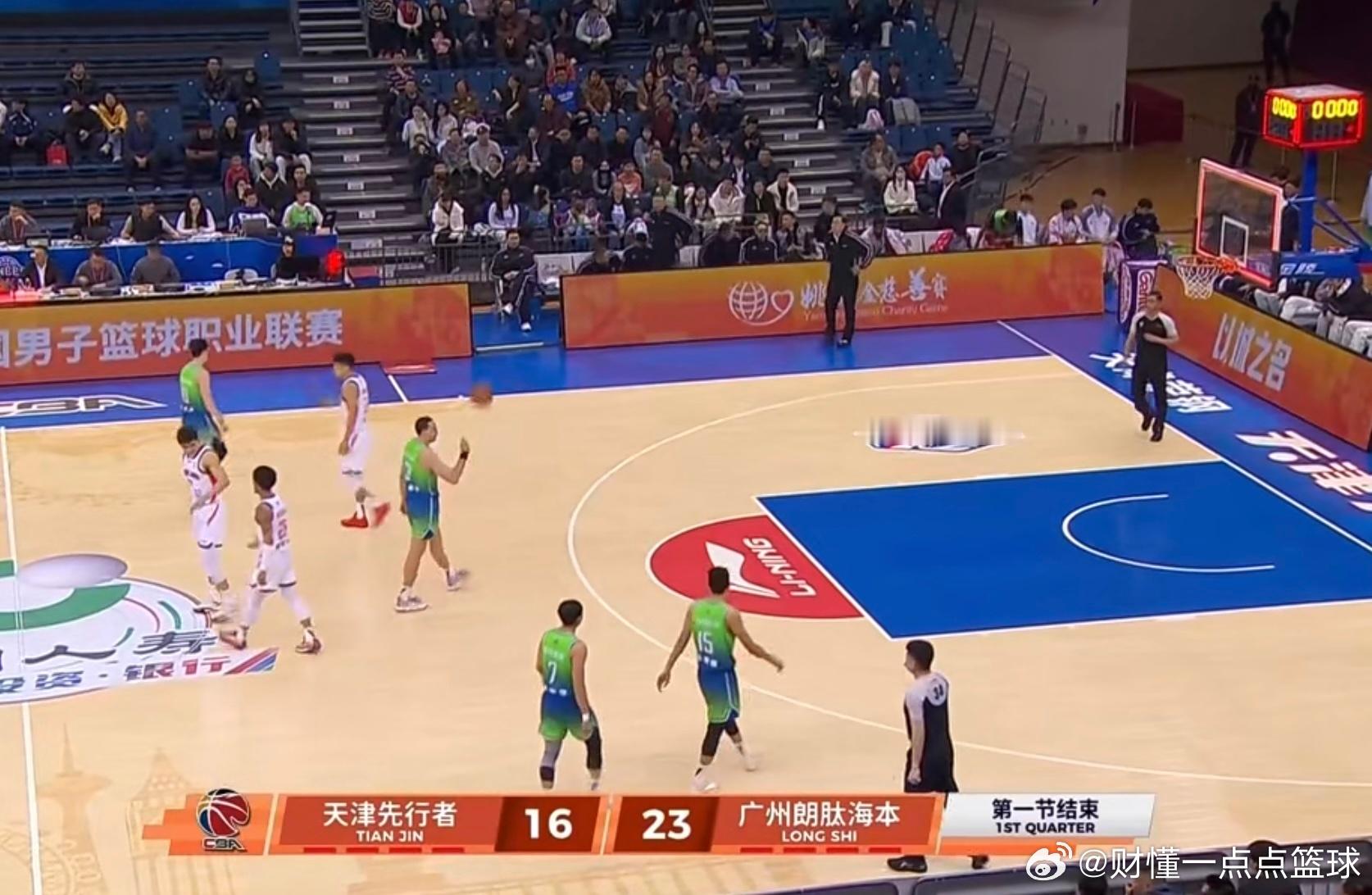 广州男篮开局可以,第一节打完,23比16暂时领先天津男篮7分!徐昕第一节2分4板
