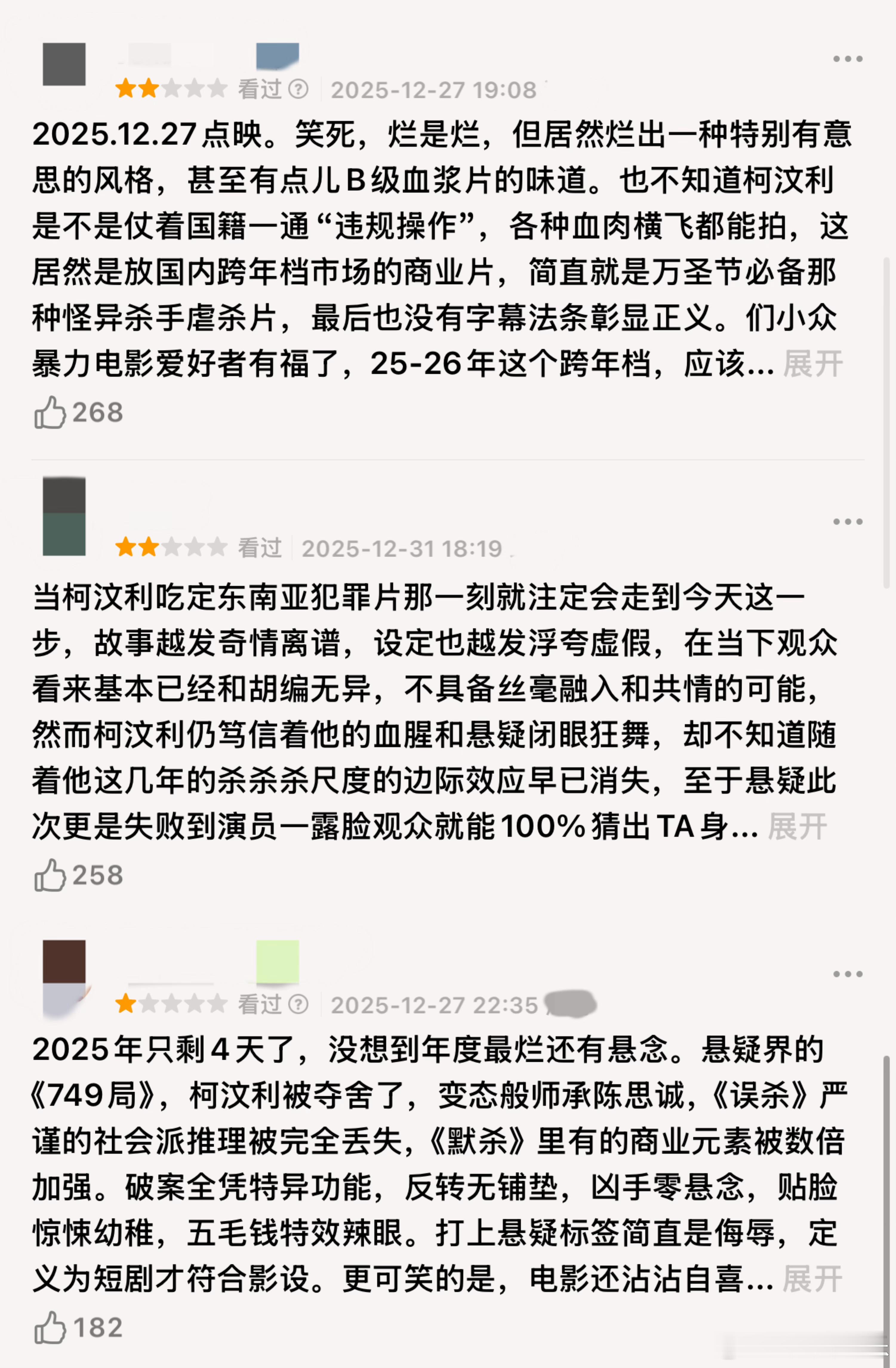 匿杀口碑 作为电影《默杀》的续作,《匿杀》于2025年12月31日正式上映。上映五日,影片就凭借前作积累的观众基础和极致的复仇爽感取得了2.09亿的票房成绩。上映首周,暴力美学尺度、复仇爽感与剧情逻辑漏洞成为观众广泛讨论的核心争议。废土风、阴湿感、乌鸦面具、断臂穿喉等高能镜头挑战国产犯罪片尺度极限;“权贵欺压,弱者复仇”的剧情走向大快人心。然而,《匿杀》的口碑却褒贬不一。