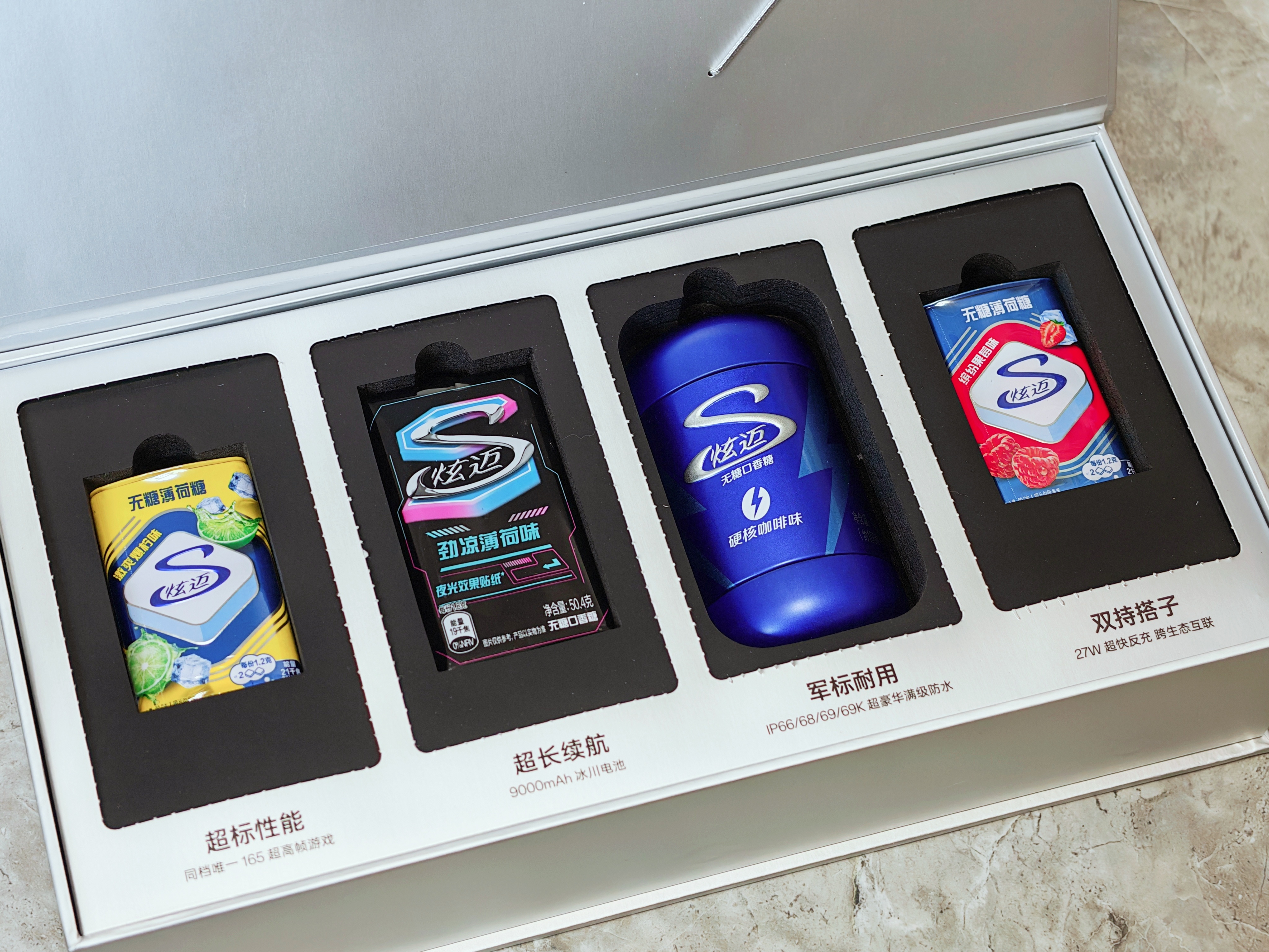 一加Turbo6机圈炫迈一加挺会玩,竟然和炫迈搞起了联合定制。这次一加Turbo6也搭载了9000mAh超大冰川电池,真是应了炫迈口香糖那句经典的广告语,续航久到离谱,根本停不下来