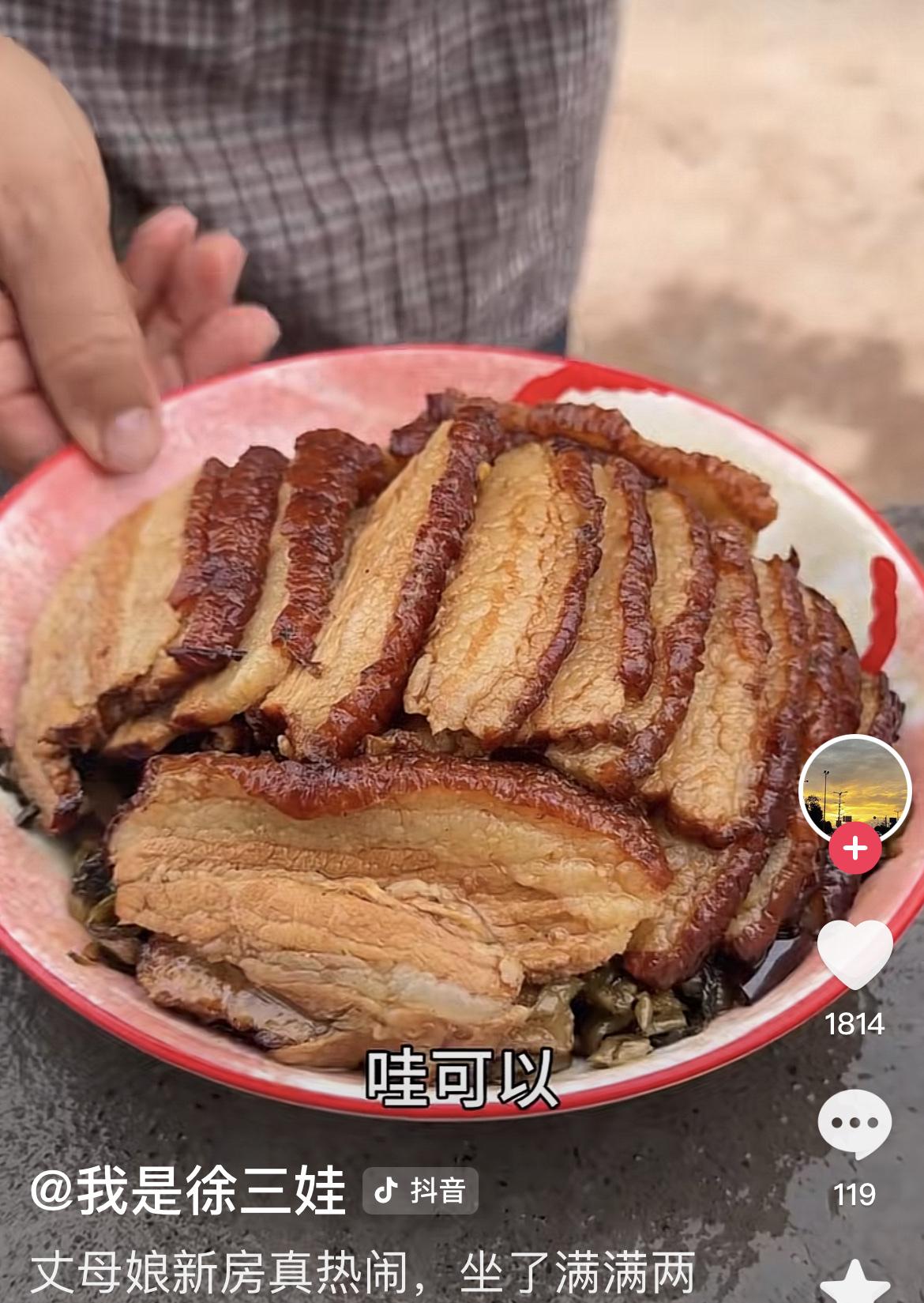 徐三娃上周做的烧白,终于端上桌了,亲戚朋友齐聚一堂,为丈母娘暖屋,庆贺三娃喜提新车! 上周,徐三娃上街采办,吃饭的碗买了30个,猪肉一大块,回家切片码味,做了几大碗烧白,一大筲箕酥肉,准备招待客人。 结果,等啊等,大宴宾客的场面一直没有出现,期间徐三娃还扛了半扇猪肉去农村四哥家庆贺修房。 今天,徐三娃开着车把亲朋好友借来,烧白蒸熟,鸡肉煮熟凉拌,大鱼切片红烧,七大盆,八大碗齐端上桌,众人围桌吃饭。 真热闹