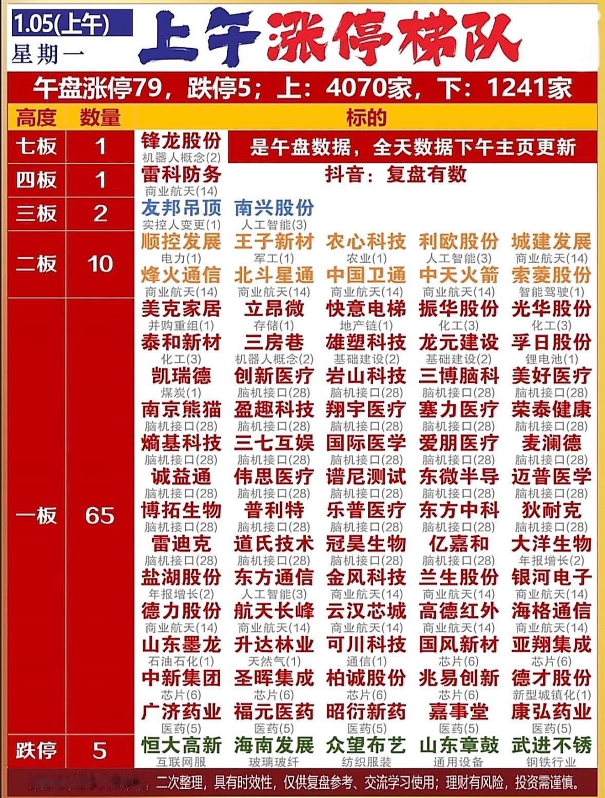 股市早盘行情 上午涨停梯队,强势股一览!📈📉 午盘涨停潮,商业航天领涨,脑机接口活跃,医药电力跟风,市场普涨情绪高,投资需谨慎。