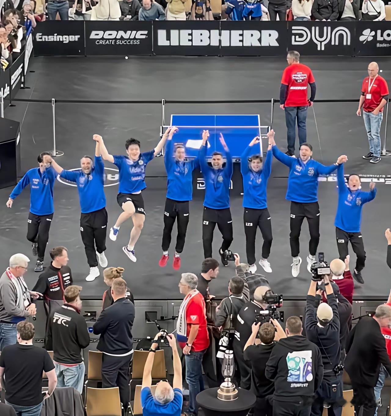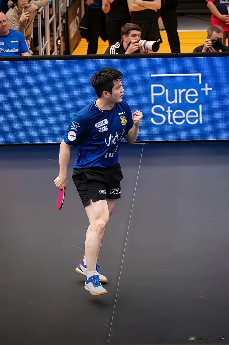 为乒乓球而生的樊振东,真帅! 之前有网友透露,说东哥的大腿肌肉结实,特适合干举重,也曾经被举重教练看中,只是东哥对乒乓球情有独钟而已。当萨尔布吕肯俱乐部夺得德国杯冠军后的庆祝场面里,看到东哥跳得那么高,该不会又被哪个跳高教练看上吧?哈哈哈,可爱的东东,妥妥的一个为体育而生的全能型选手。不过,还是喜欢看樊振东打乒乓球的样子,帅呆了!
