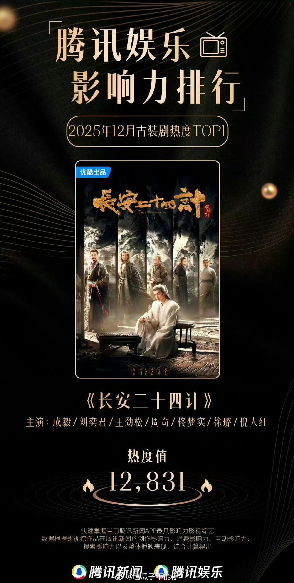 成毅的长安二十四计🐧娱乐影响力排行top1!实至名归