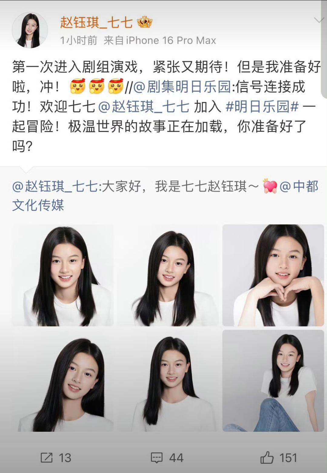 拒签于正的素人七七杀疯了[超话] 15岁街拍女神出道即王炸! 谁懂啊!半年前婉拒于正的素人七七,公式照一甩直接美出新高度! 清冽眉眼撞脸张柏芝,灵动到镜头都抓不住,这“天然电影脸”果然老天爷赏饭吃! 更绝的是签约就进组《明日乐园》,搭戏钟楚曦、尹昉的科幻大制作,开局配置拉满~ 妹妹发文“紧张又期待,冲就完事”,又怂又勇的样子太圈粉! 拒流量捷径选踏实路,素人逆袭成影视新人,这波清醒操作比公式照还吸睛,坐等妹妹在末日冒险里惊艳全场!