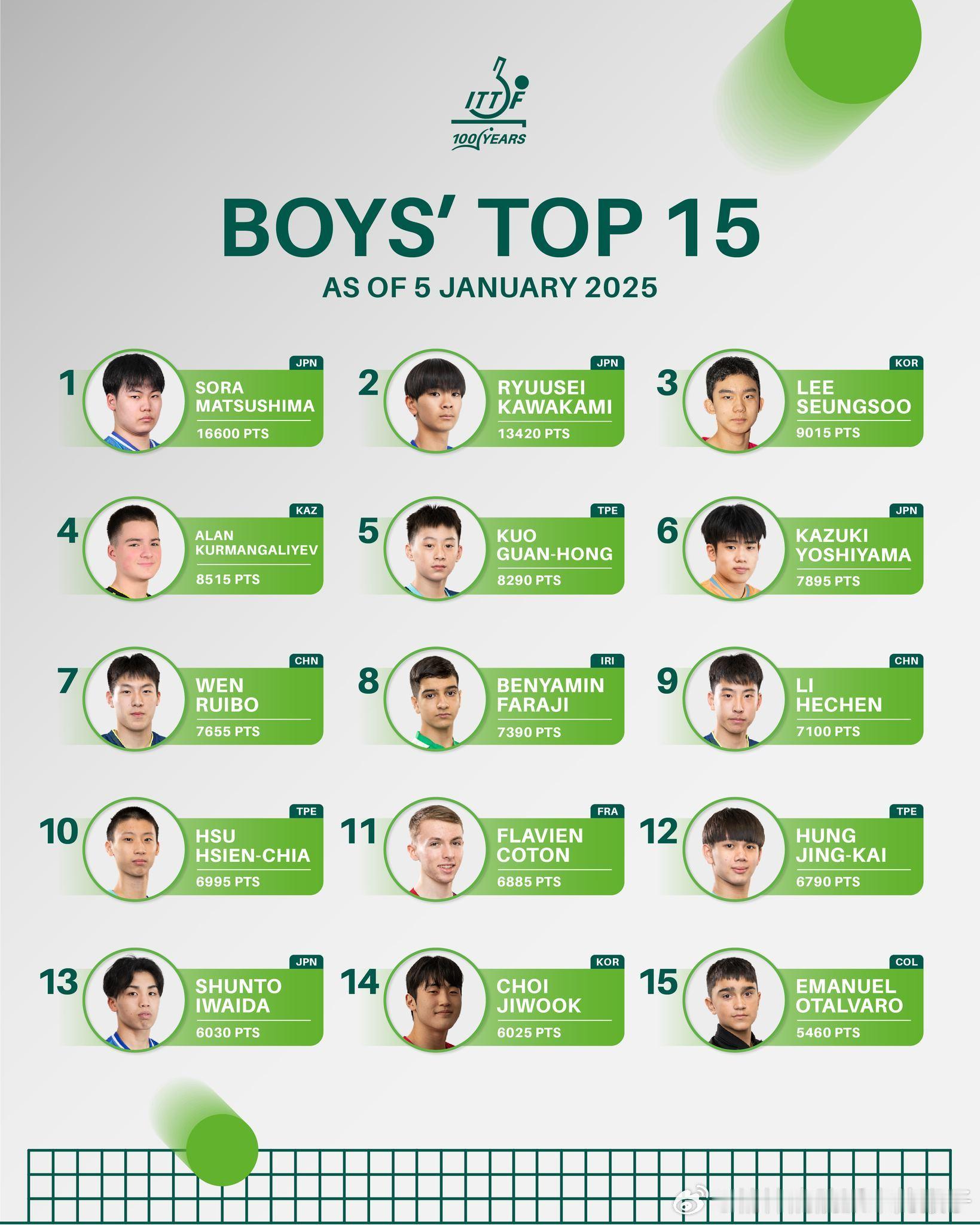 2026年国际乒联第2️⃣周世界排名更新ITTF更换了新的一百周年的logo,世