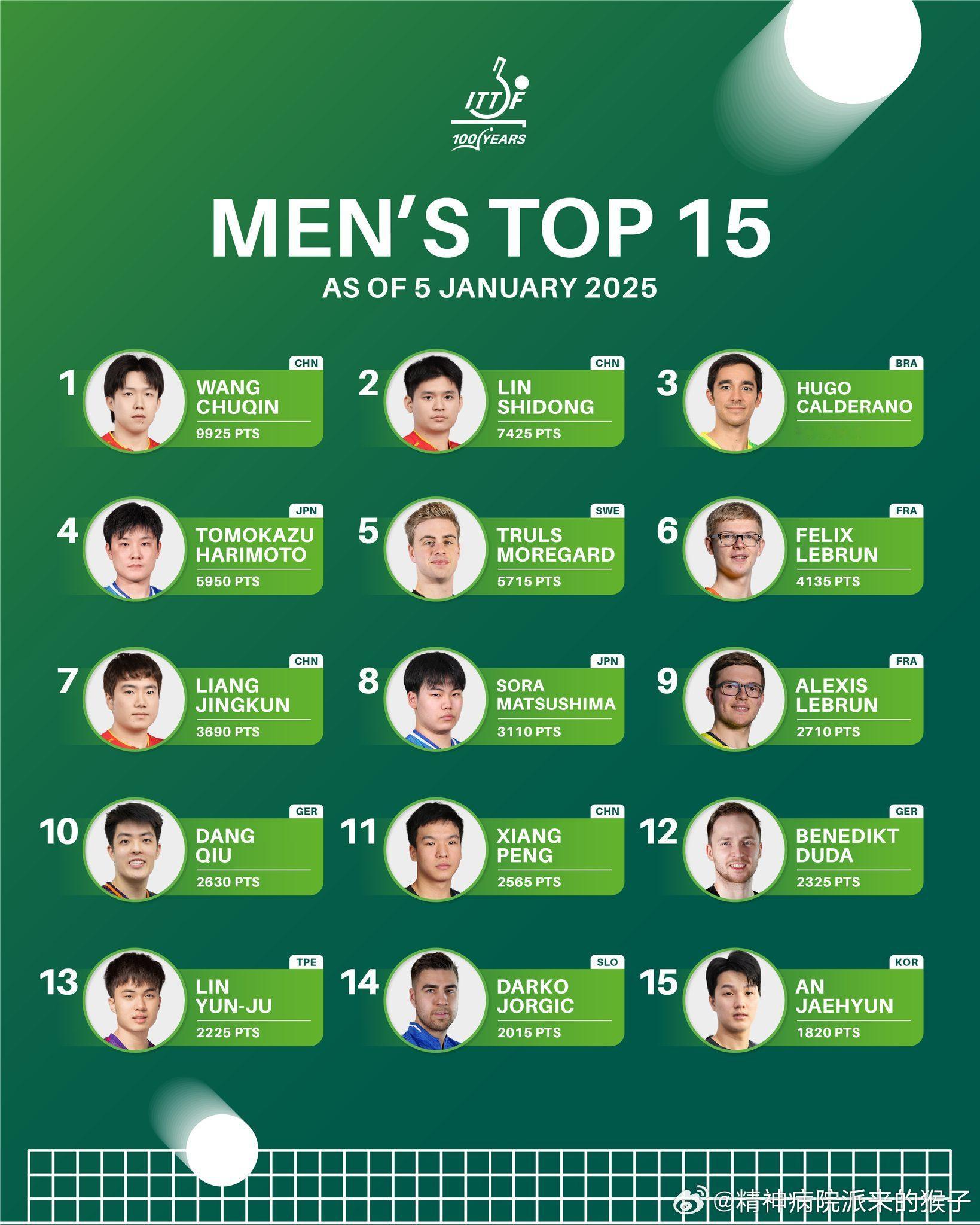 2026年国际乒联第2️⃣周世界排名更新ITTF更换了新的一百周年的logo,世排也换了新的排列方式