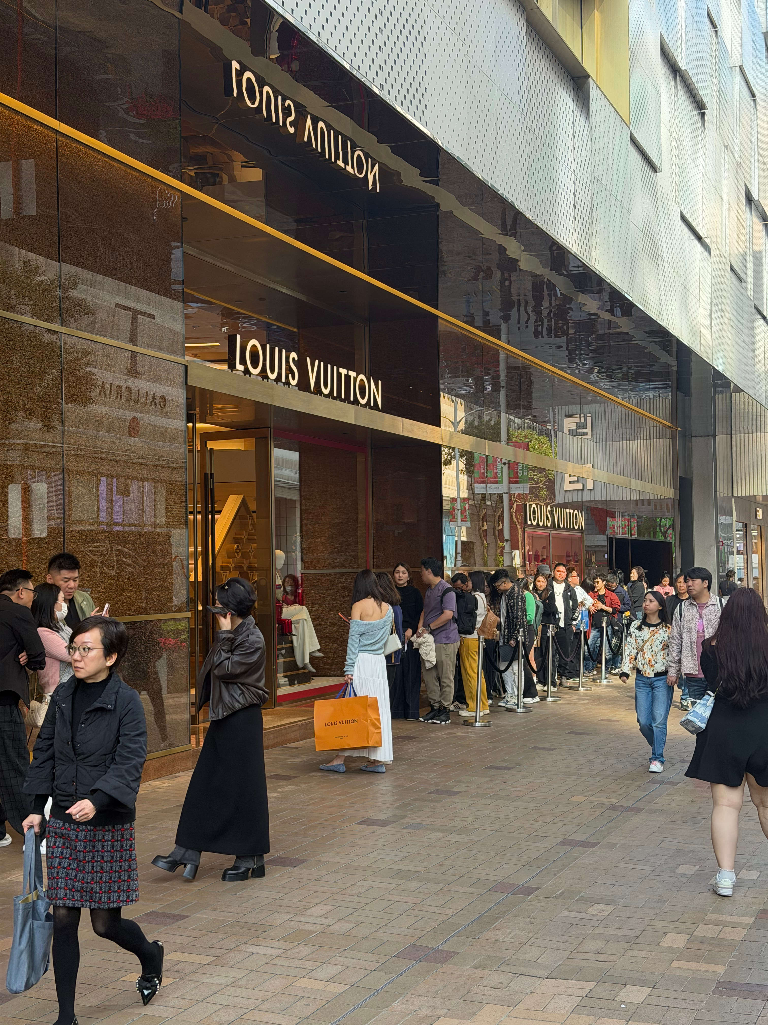 LV是真的回事真的每时每刻都在排队这也太旺财了吧原来就只有我消费降级了是吧我吸吸你的财气好吧后面去试了一下Demna的新Gucci我的天那个剪裁…我36裤头都穿不下订不了一点… 香港