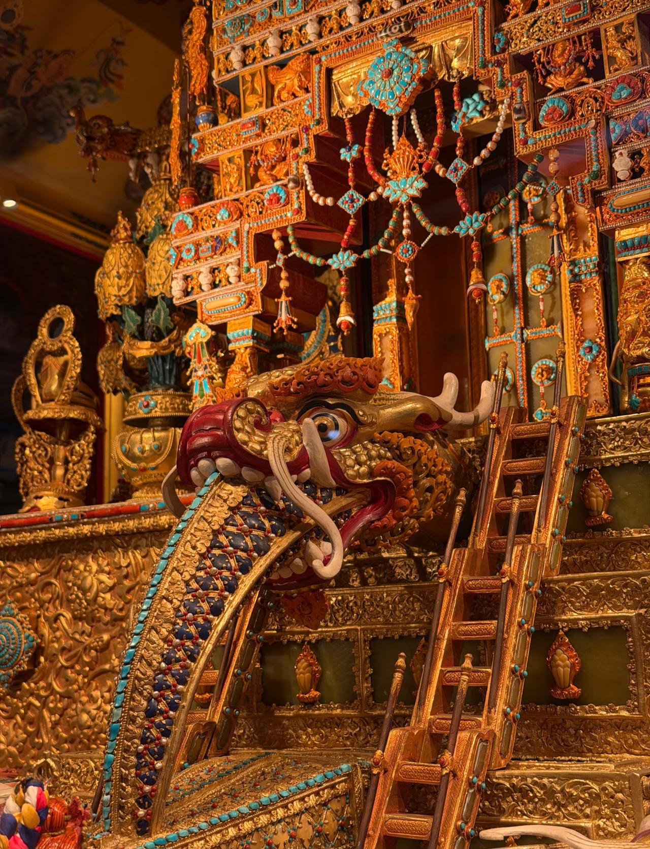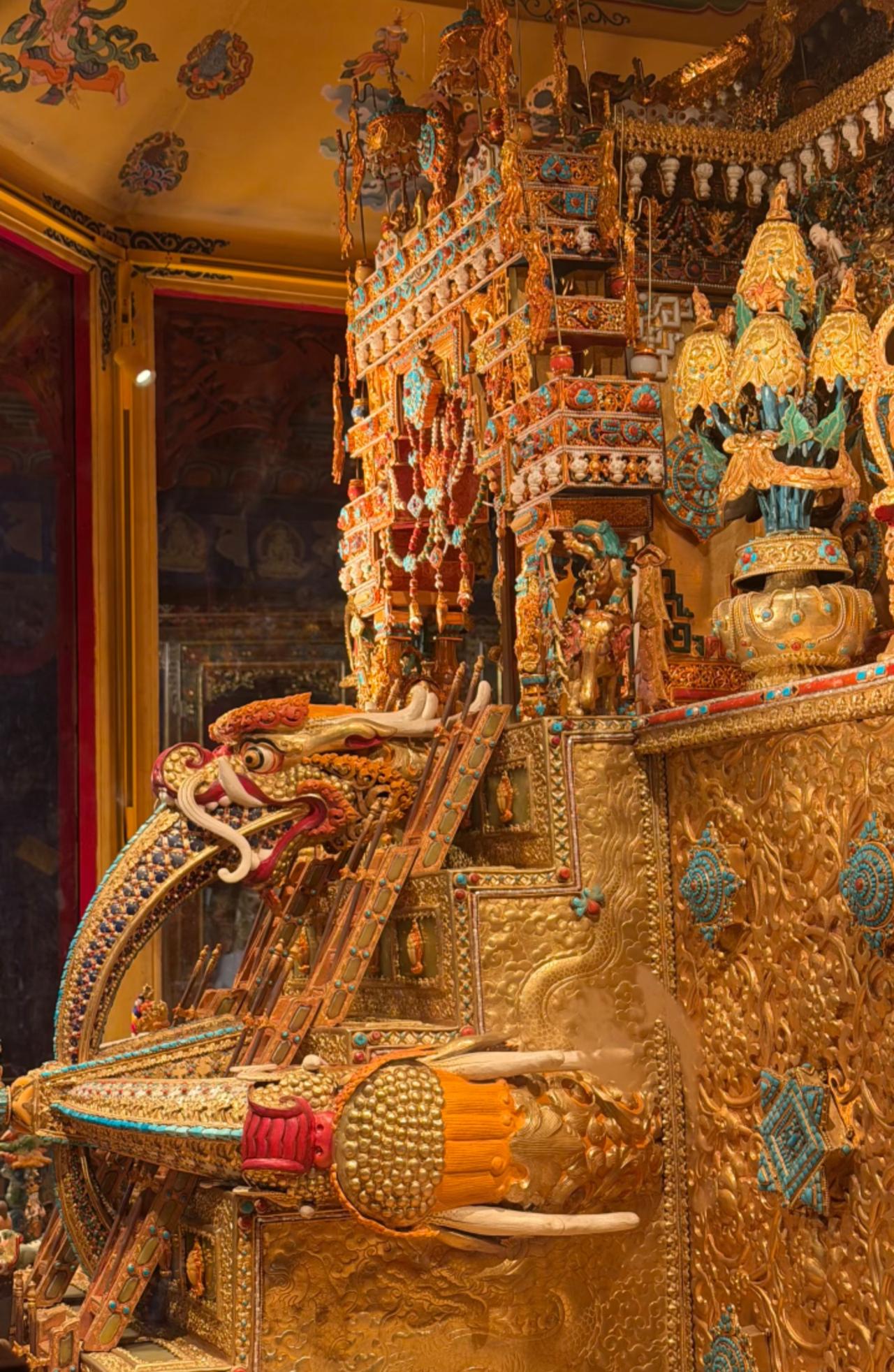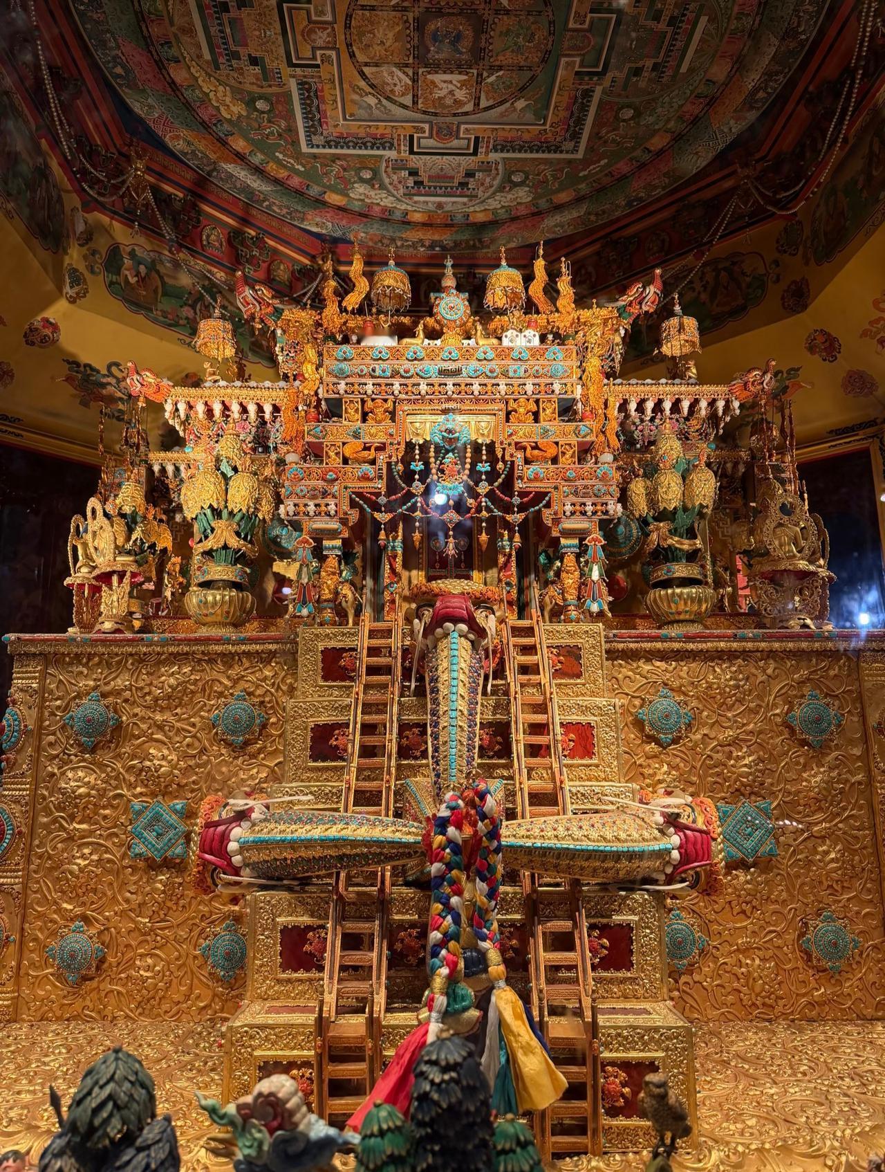 来自藏式美学的震撼! 它是位于西藏的大昭寺纯金大威德金刚坛城 据说光建造它就花了4年多时间, 而且投入了4个亿。 除了纯金镶宝工艺以外, 还有大量黄金打底, 同时搭配上天珠、绿松石、南红等 珍贵的宝石进行点缀, 每一处细节都透露着工匠精神。 这里也是西藏现存的坛城中, 含金量最高, 工艺最精湛, 用料最考究的佳作! 藏传金铜佛像 铜藏传佛像 大昭寺 那曲藏佛铜像 藏传铜佛塔 西藏坛城 尖古堆大昭寺