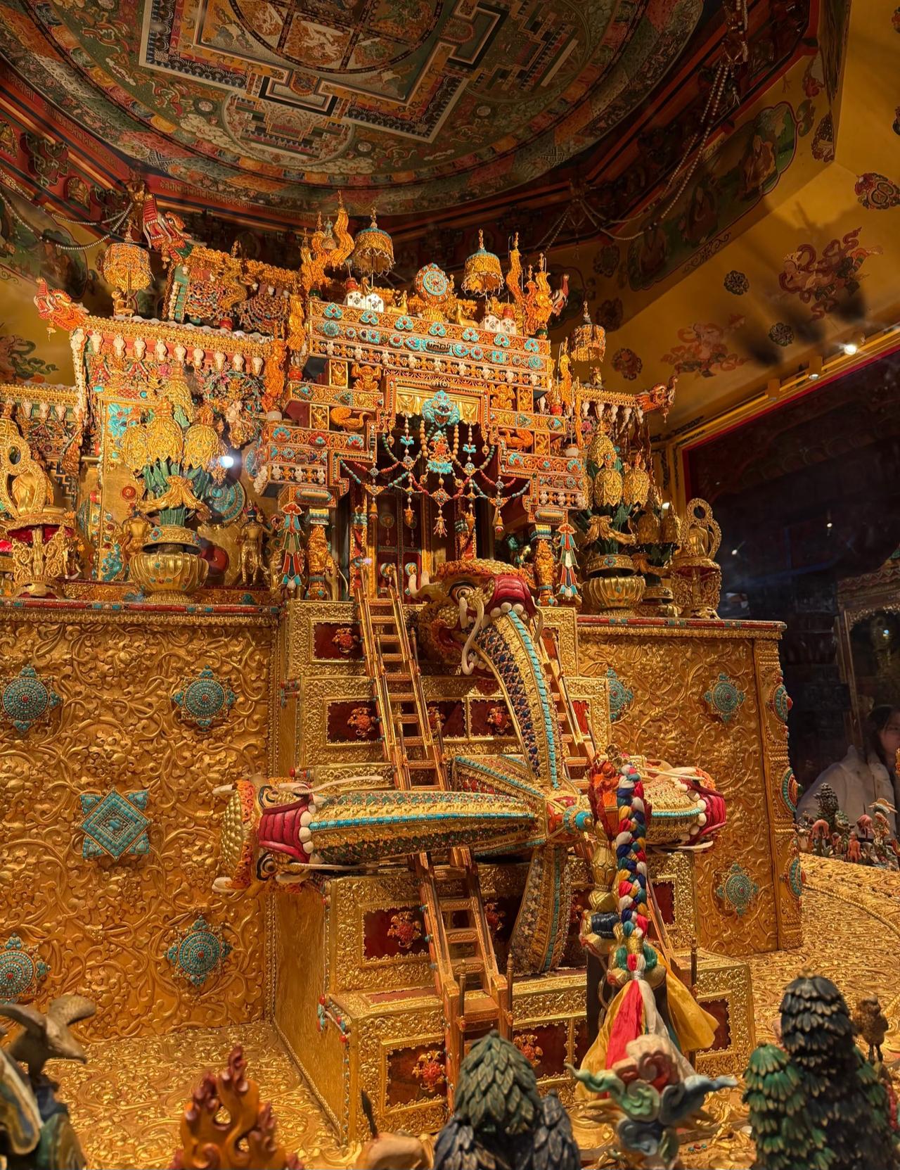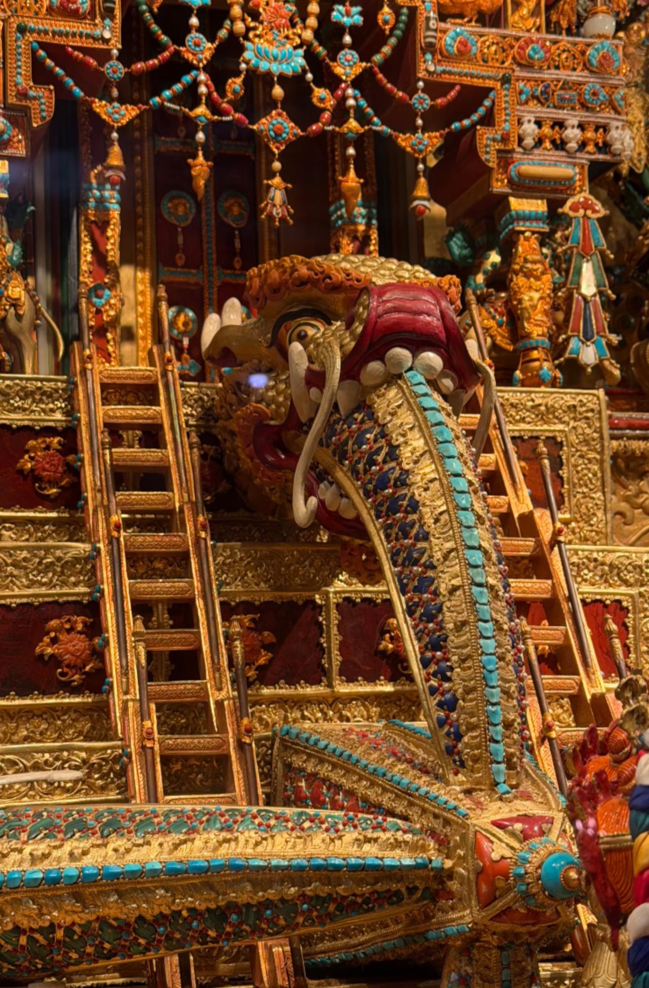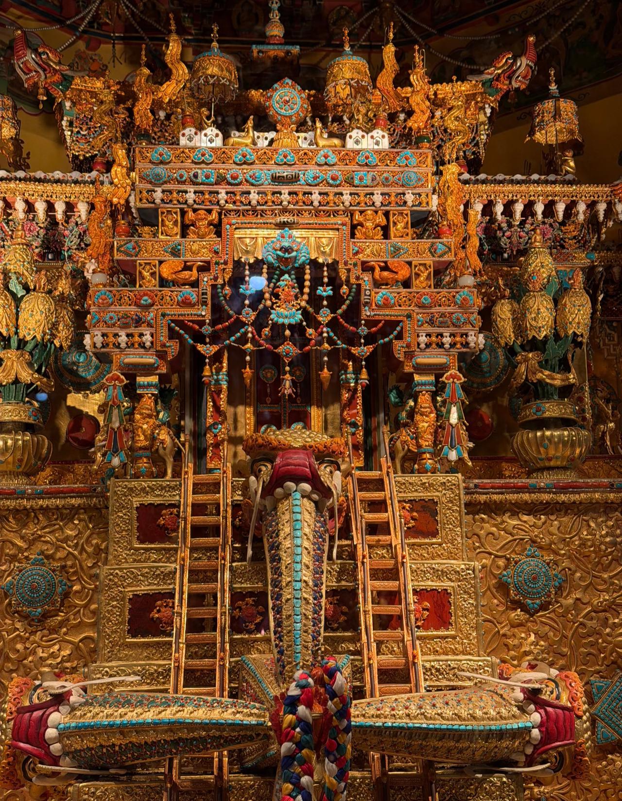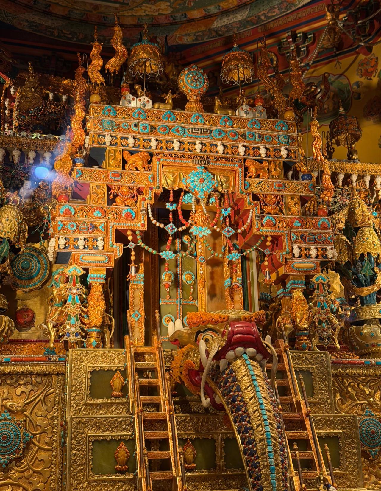 来自藏式美学的震撼! 它是位于西藏的大昭寺纯金大威德金刚坛城 据说光建造它就花了4年多时间, 而且投入了4个亿。 除了纯金镶宝工艺以外, 还有大量黄金打底, 同时搭配上天珠、绿松石、南红等 珍贵的宝石进行点缀, 每一处细节都透露着工匠精神。 这里也是西藏现存的坛城中, 含金量最高, 工艺最精湛, 用料最考究的佳作! 藏传金铜佛像 铜藏传佛像 大昭寺 那曲藏佛铜像 藏传铜佛塔 西藏坛城 尖古堆大昭寺