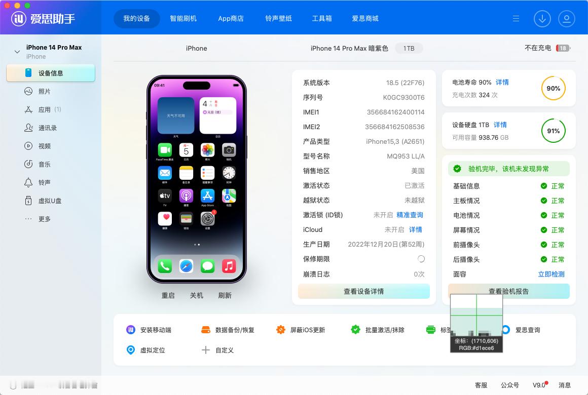 编号:00114 美版无锁 1TB iPhone 14Pro Max 紫色 电池90% 外观93新 全原装 稀缺高电90 改好双卡 使用跟国行一样双卡全网通5G 6.7寸灵动岛大屏 A16芯片 观感佳 性能强 价优出 裸机 价格:3880元