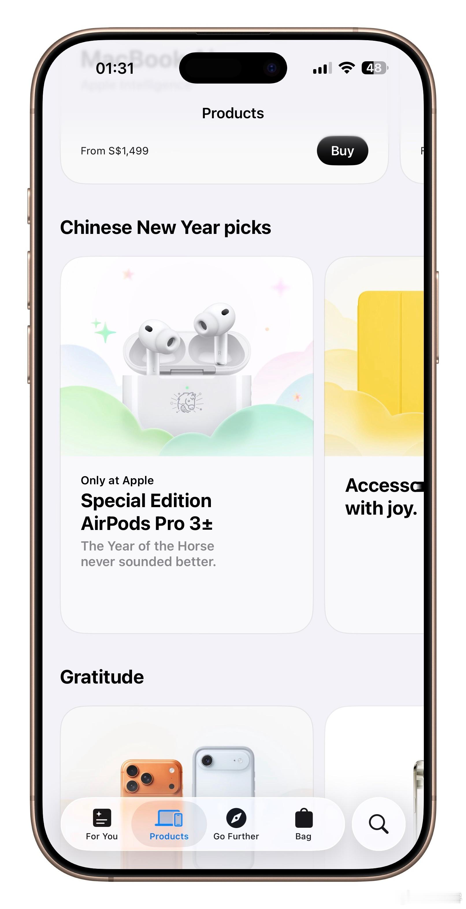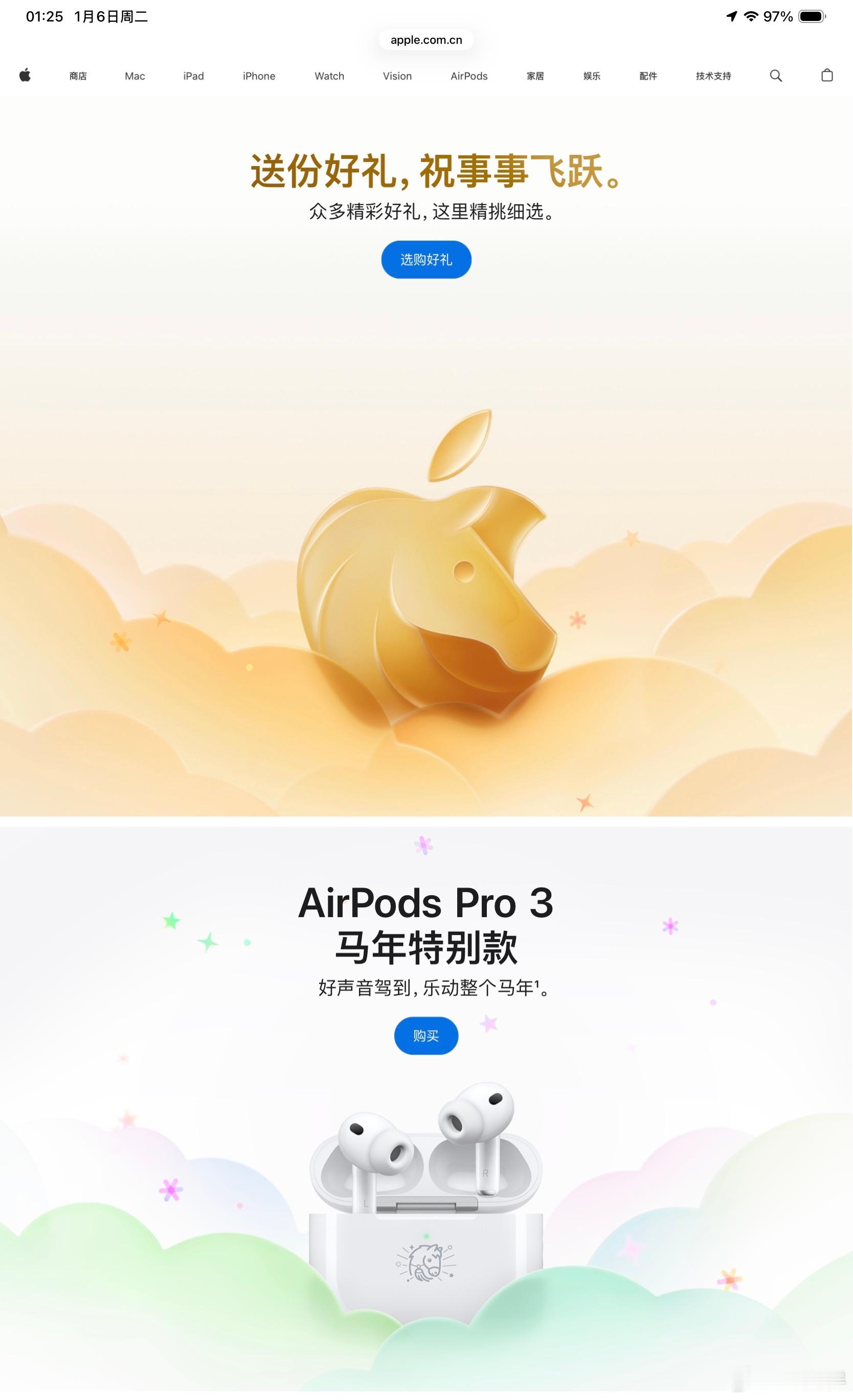 苹果推出 新年活动页和 马年特别款「好声音驾到,乐动整个马年」APP3 马年特别款定价 ¥1899,和普通款相同今日即可在 Apple Store 取货(图2)也可送货除了中国大陆,全大中华地区也同步开售🇭🇰🇸🇬图4香港 - 「祝馬年耳福不絕。」图5台湾 - 「馬年的祝福,前所未聞的動聽。」图6新加坡 - The year of the Horse never sounded better.