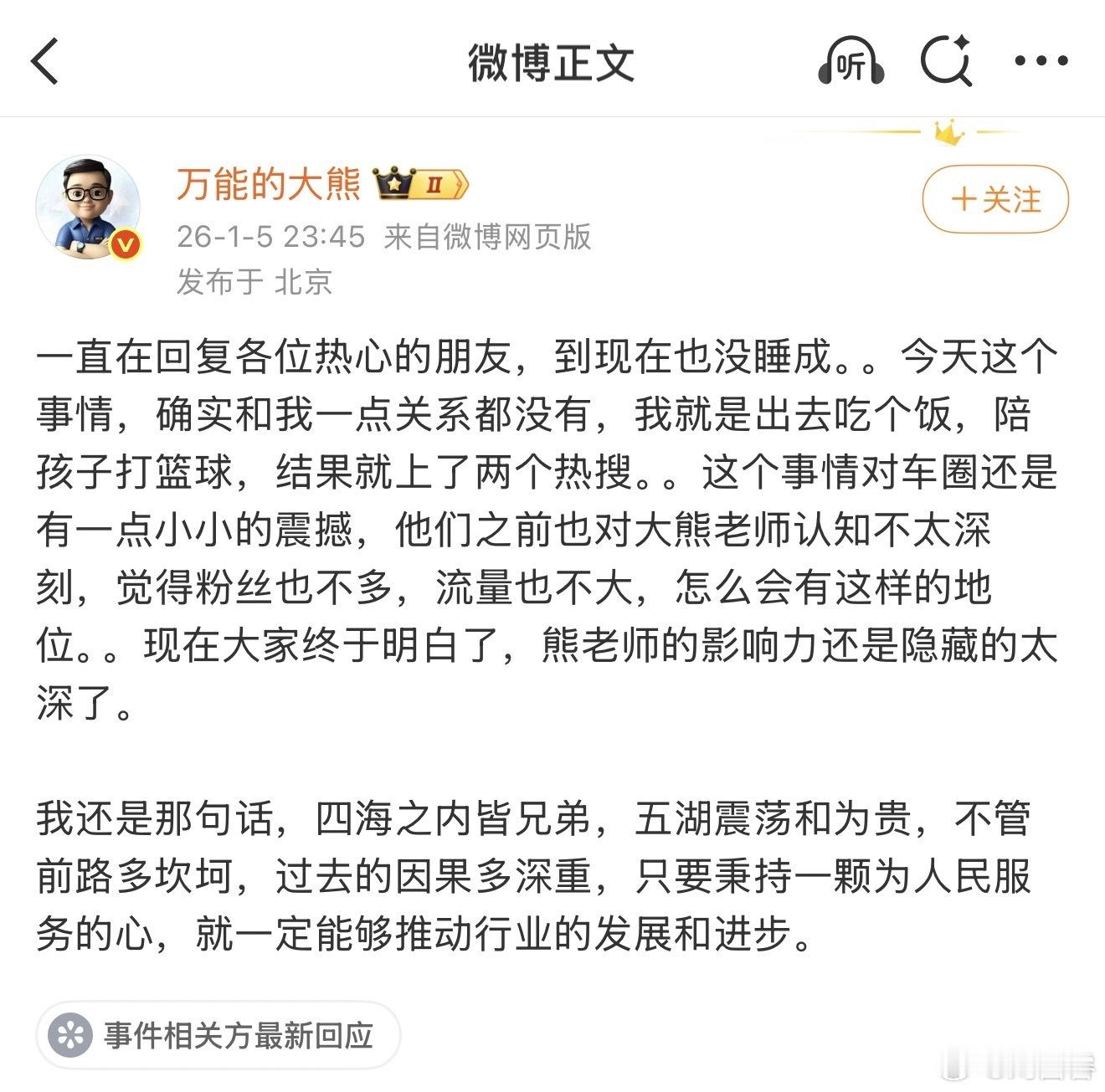 大熊依旧丧事喜办之王,丢人的是拽文也没拽对四海之内皆兄弟,五洲震荡和为贵(娜娜老师说过了)我只想说,你™️也配说出「为人民服务」这句话?你这货™️也配说「推动行业进步」?你™️谁啊😅