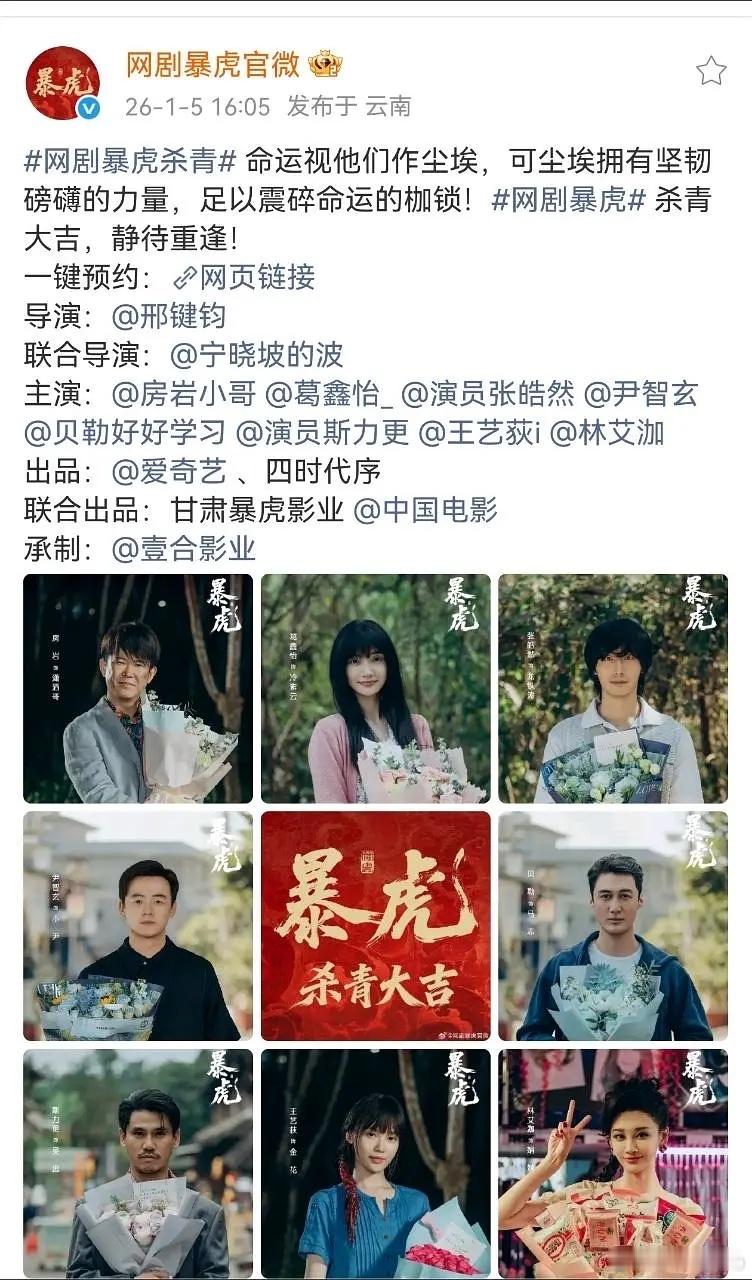 暴虎官宣杀青了,杀青时各个组都写了寄语,编剧组给寄语是【赋予冯河凌冽的锋芒和滚烫的灵魂,让暴虎的孤勇破局而出】。看好这个冯河和暴虎!!