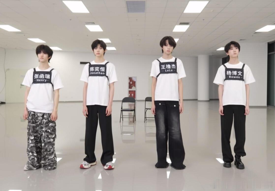 这四个神人的鞋有一个是正常穿的吗。?一个只看得到一只鞋头一个鞋比头大一个完全看不到鞋一个只有一条裤腿放下来tf家族 | 王橹杰 | 杨博文 | 张函瑞 | 陈奕恒