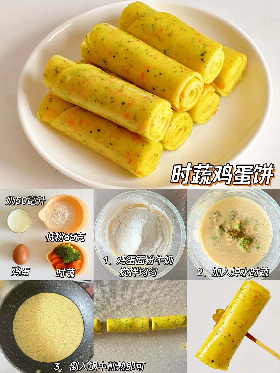 宝宝营养快手果蔬鸡蛋卷|松软好吃,手指食物