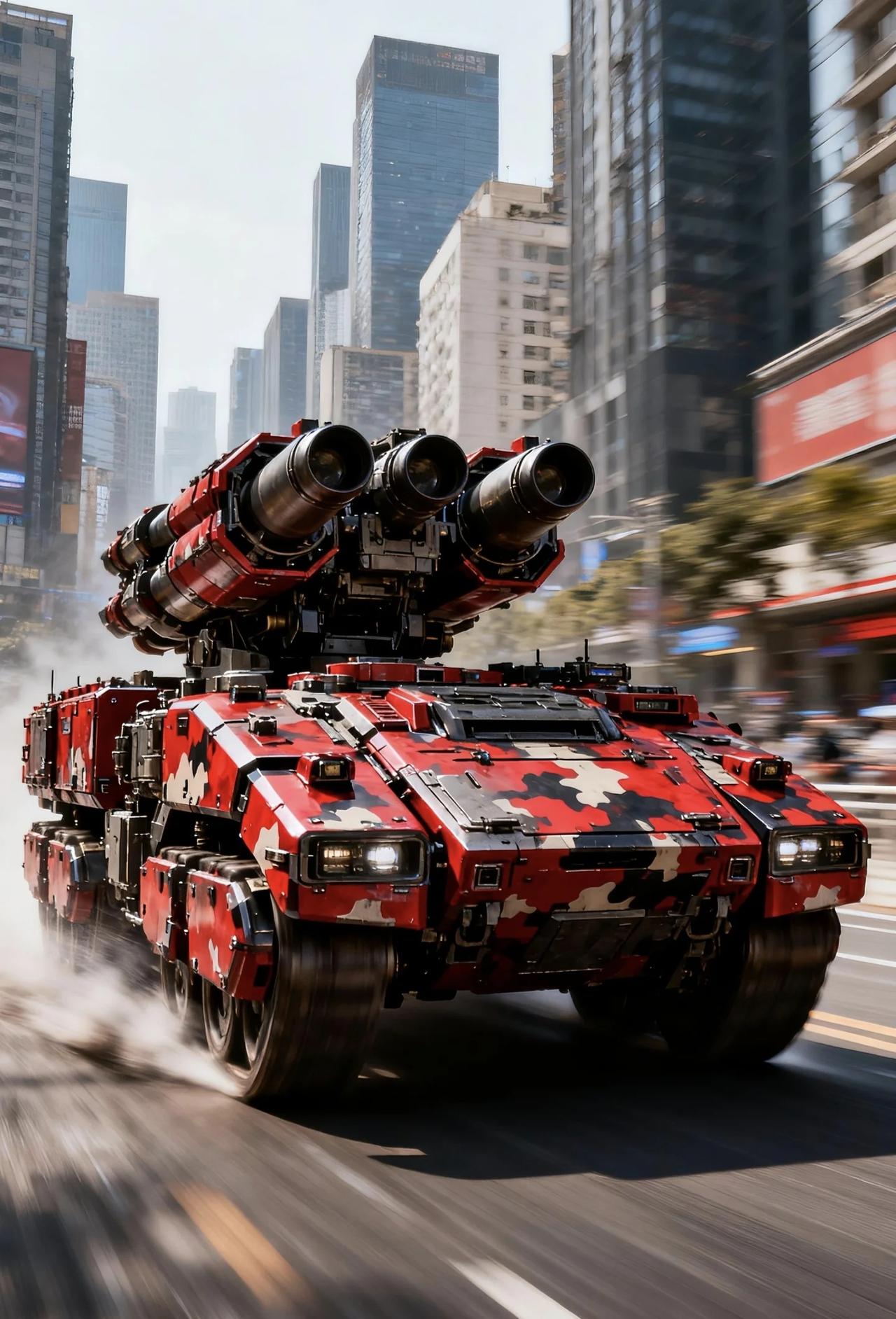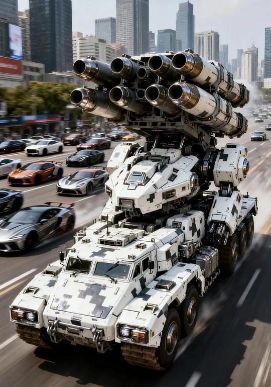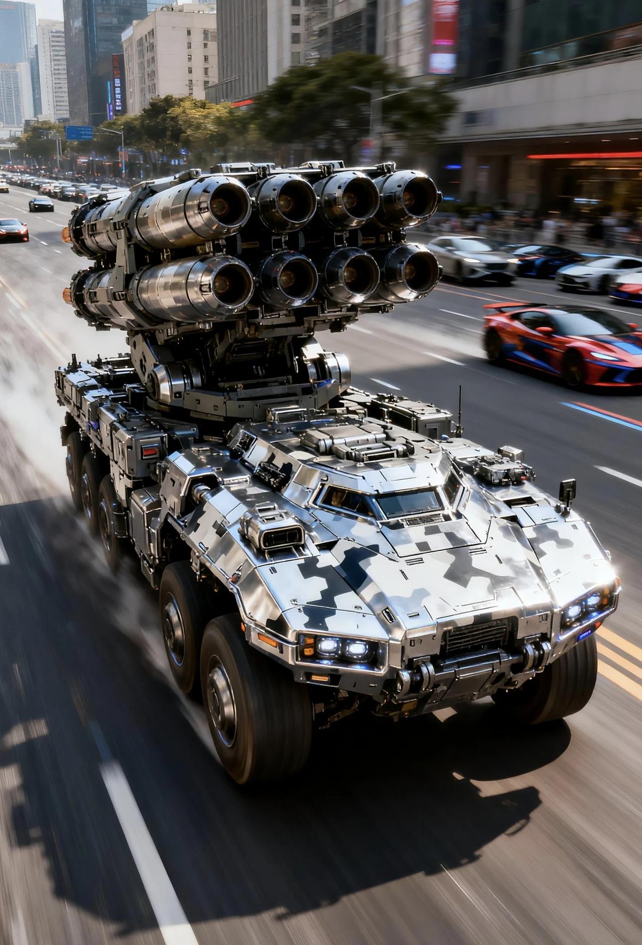 【机械巨兽的都市狂飙】 当钢铁巨兽碾过都市沥青,银刃导弹在楼宇间闪着冷光。八轮重卡托举着战争之矛,在摩天楼的阴影里疾驰,机械铰链的金属轰鸣与城市霓虹共振,一场属于未来的威慑,正以雷霆之势,在繁华与硝烟的边界上狂飙突进。 军迷发烧友 军事爱好者 战车