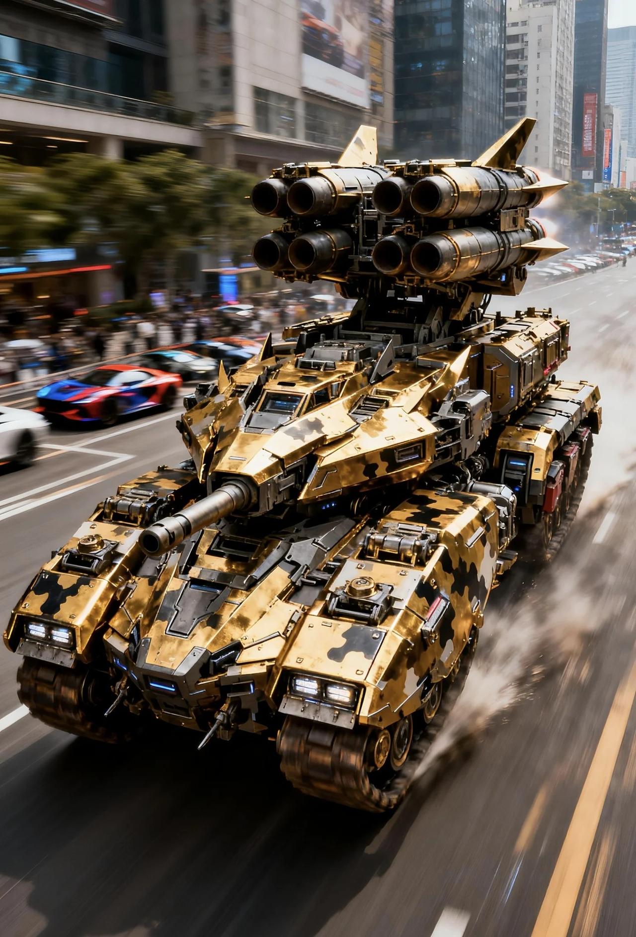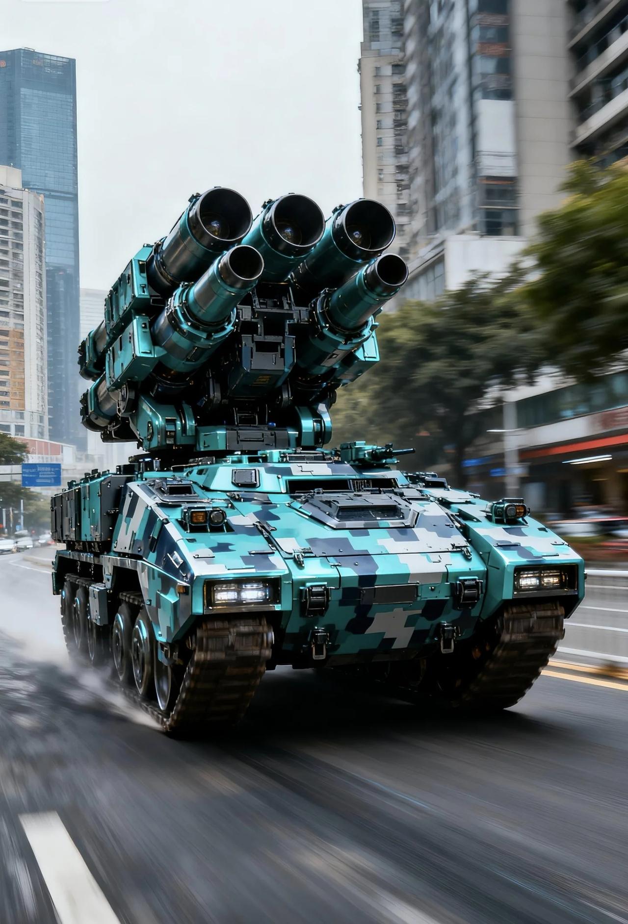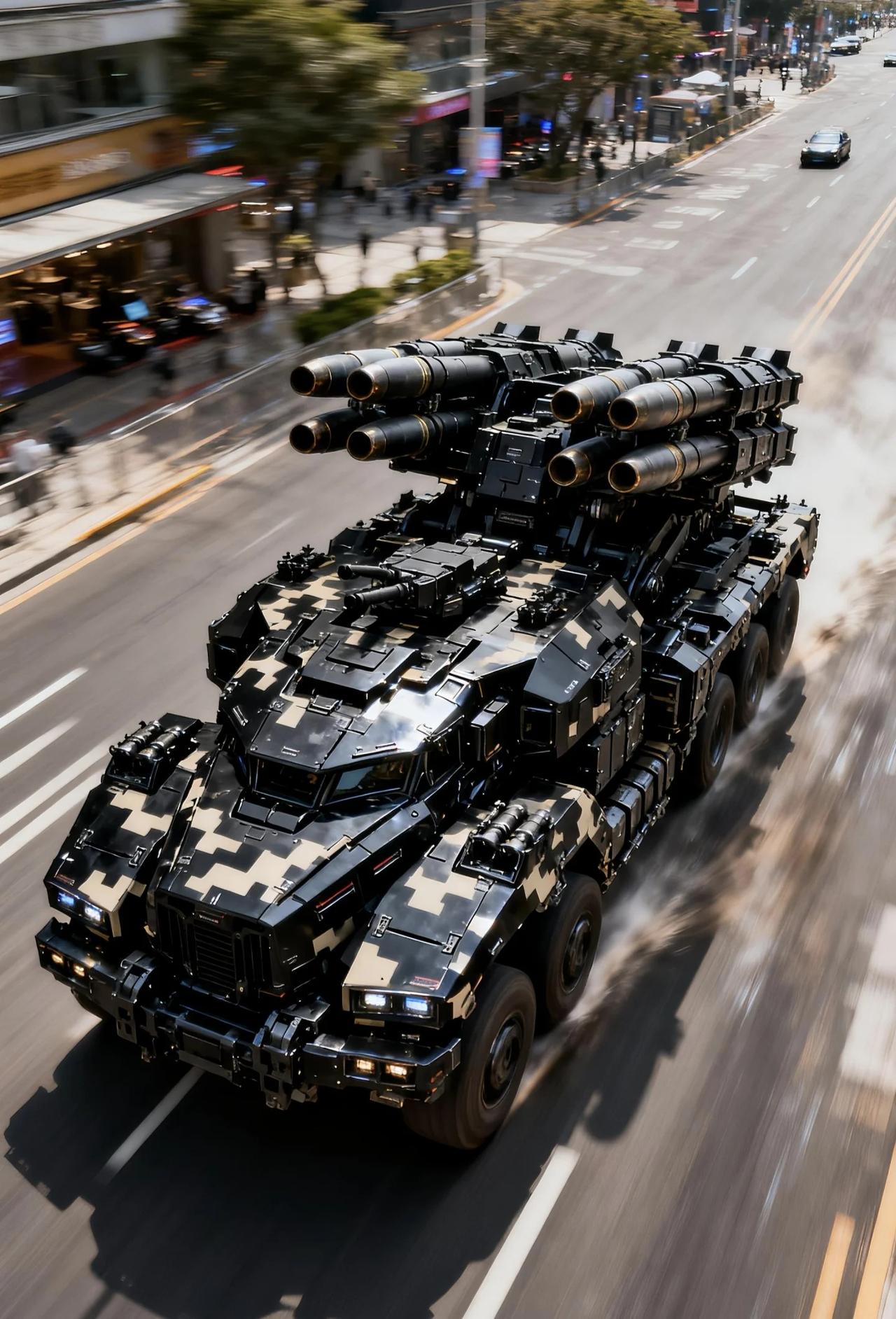 【机械巨兽的都市狂飙】 当钢铁巨兽碾过都市沥青,银刃导弹在楼宇间闪着冷光。八轮重卡托举着战争之矛,在摩天楼的阴影里疾驰,机械铰链的金属轰鸣与城市霓虹共振,一场属于未来的威慑,正以雷霆之势,在繁华与硝烟的边界上狂飙突进。 军迷发烧友 军事爱好者 战车