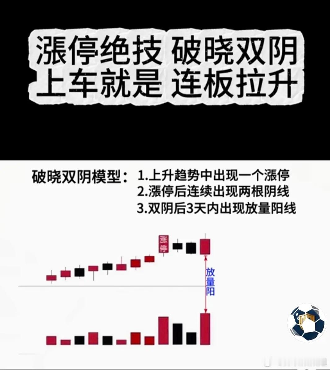 涨停绝技 双阴再放量①上涨图中来个涨停②涨停后两连阴,1阴实体是2阴实体的1/2;但是1阴的量能大于2的量能③2后三天内再次放量阳线为买入