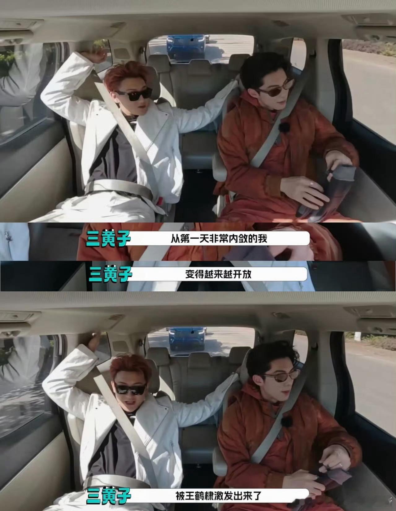 哈哈哈哈笑死我了🤣车上黄子韬水喝多了想上厕所 兄弟王鹤棣看到慢悠悠的打开手机拍站拍照韬韬都憋出痛苦mask了领导夹菜我转桌 兄弟憋尿我唱歌