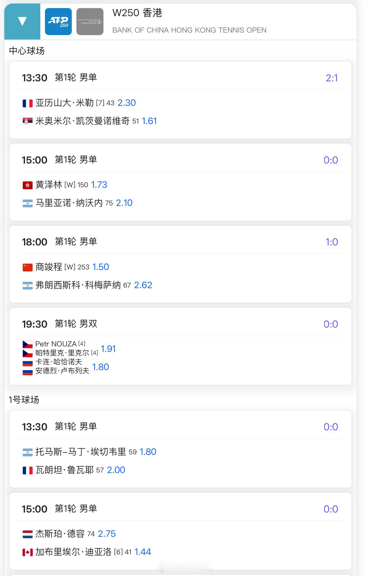 中国球员今日赛程布里斯班500第二轮18:30 🇨🇳张帅6 vs 莱巴金娜1.12香港250首轮18:00 🇨🇳商竣程1.5 vs 科梅萨纳2.65奥克兰250双打首轮8:00 王欣瑜🇨🇳/郑赛赛🇨🇳 vs 郭涵煜🇨🇳/梅拉德诺维奇年度体育榜样力量体育大赏