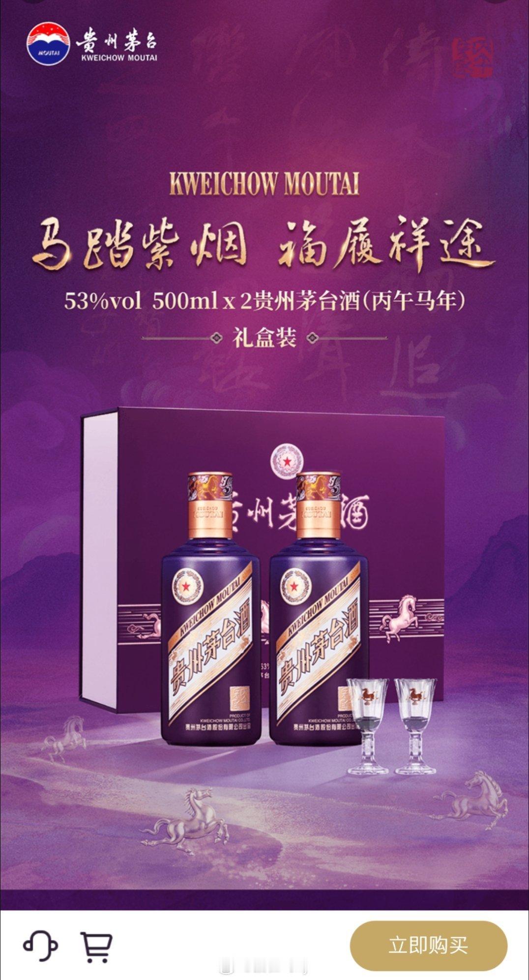今年的马年茅台紫色的霸气又漂亮没抢到礼盒装只抢到2瓶普通装给娃攒着