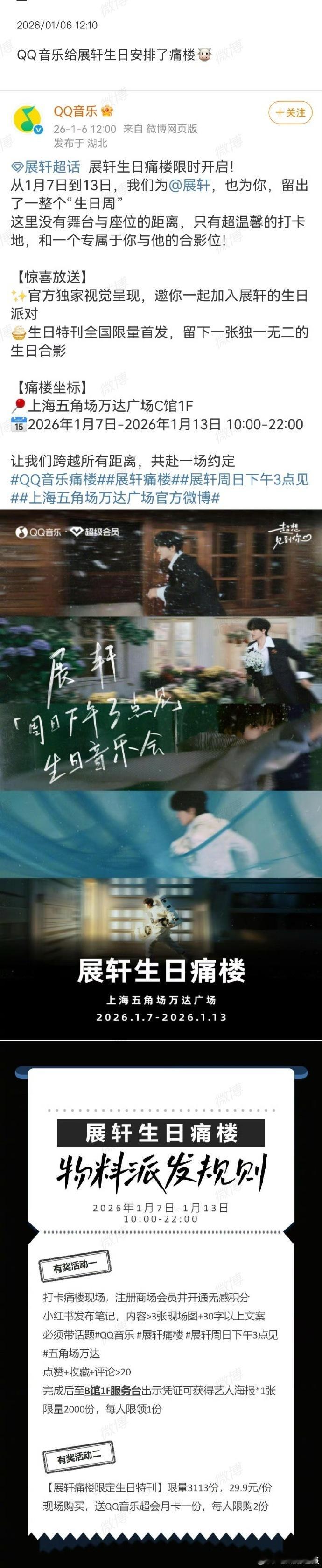 展轩生日痛楼由 QQ 音乐专属安排,建筑装饰聚焦他的多元发展轨迹,从影视角色到原创单曲均有呈现。现场设置的打卡环节,让应援更具参与感与仪式感。QQ音乐给展轩生日安排了痛楼QQ音乐给展轩安排生日痛楼