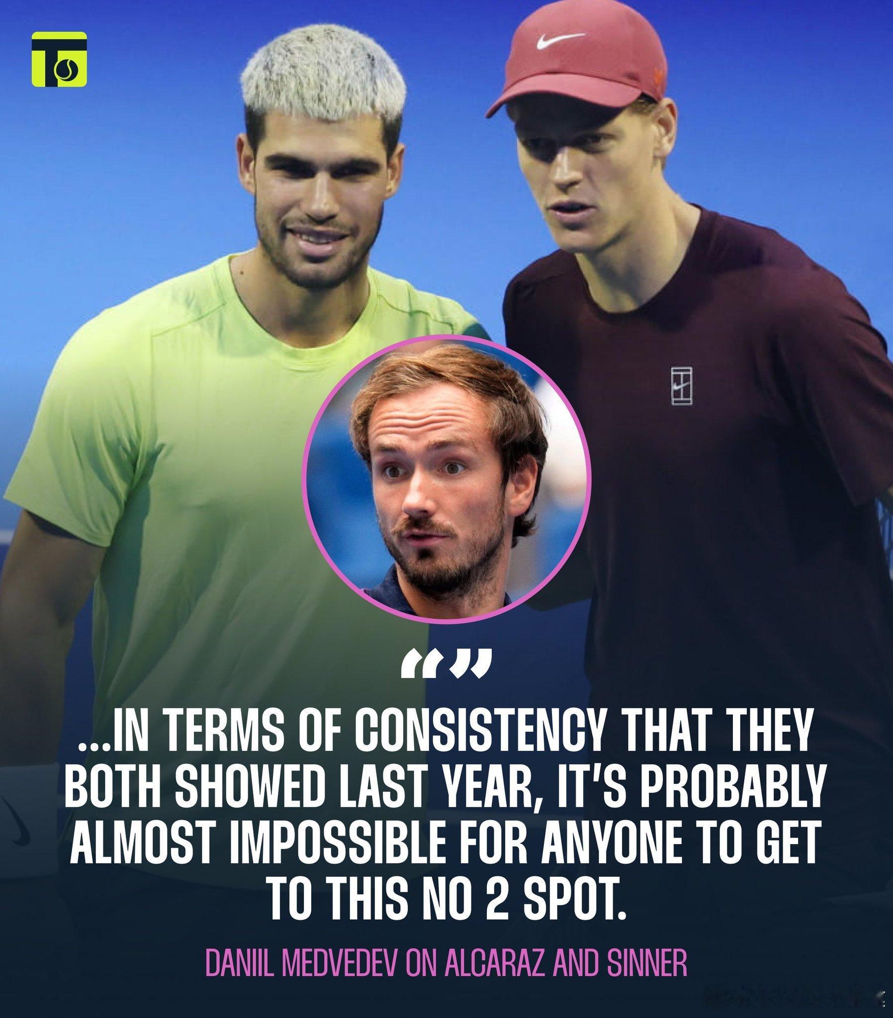 你们同意吗?梅德韦杰夫:鉴于2025赛季阿尔卡拉斯和辛纳的稳定性,我觉得2026几乎不可能有人能挑战他们的TOP2地位。澳网2026