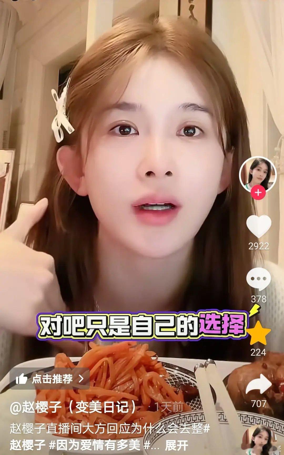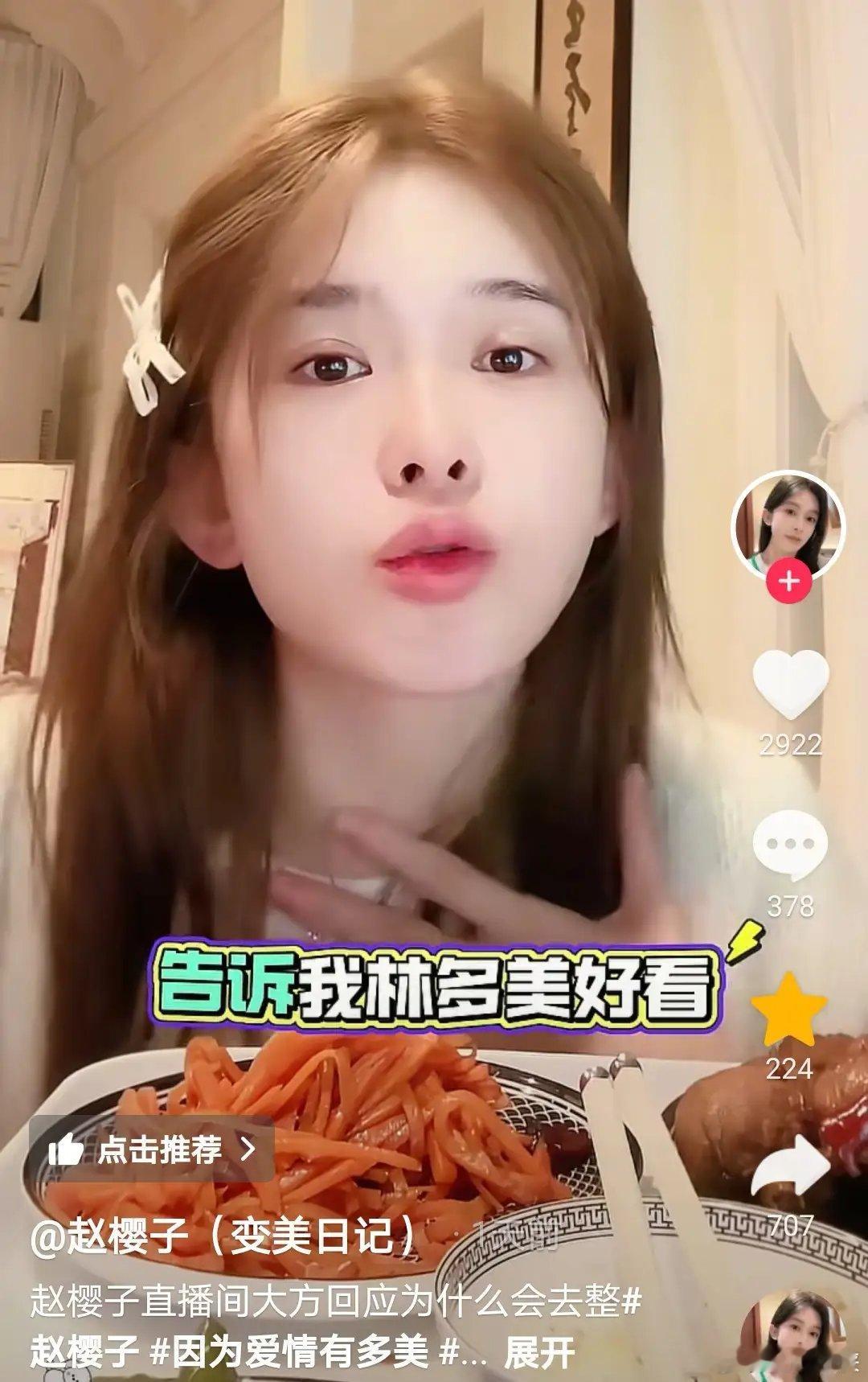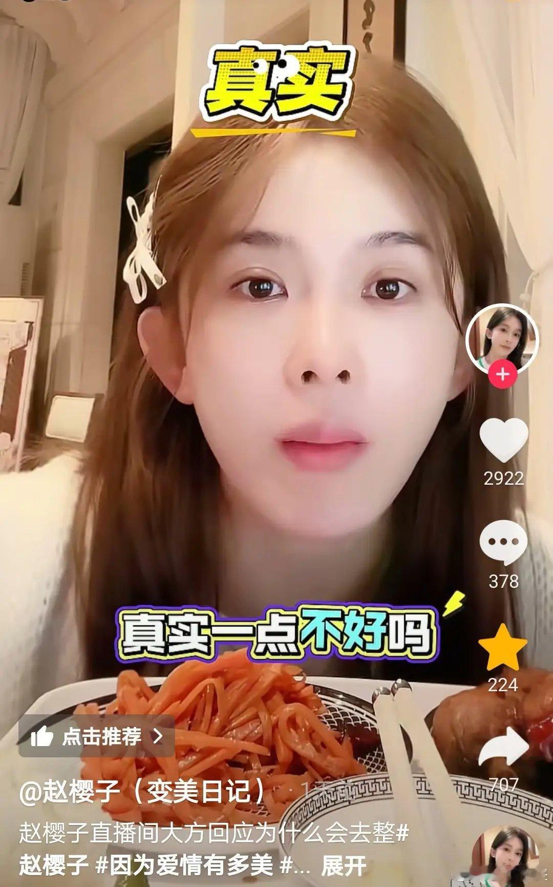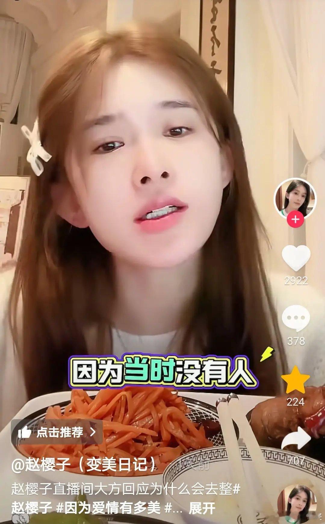 赵樱子终于说出自己整容的真正原因!当时《因为爱情有多美》播出时,大家都喜欢她,觉得她好美,但是社交平台没那么发达,没那么多,她看不到太多大家对她的夸赞,所以她不知道原来大家那么喜欢她,觉得她那么美!所以她决心去整了,想把自己变得更美,结果事与愿违!还好她心态比较好,说做了就做了,没什么大不了,又不是犯法的事,活的真实一点,不像别人还去证明没整。很佩服她的胆识,真实大方,爱美之心人皆有之,没有对与错,自己的选择永远是对的!不后悔!