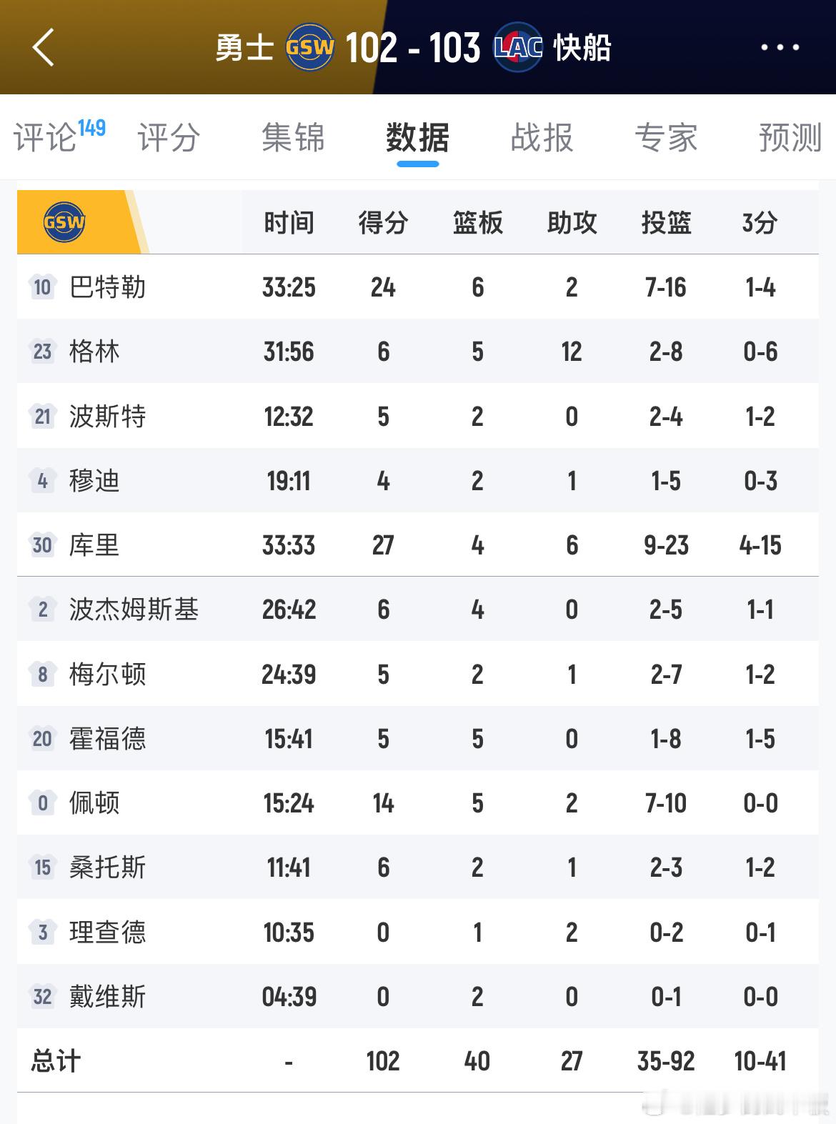 一分之差!巴特勒绝杀球偏出勇士不敌快船库里27分6助攻,巴特勒24分6篮板;伦纳德24分12篮板5助攻,桑德斯20分7篮板勇士vs快船