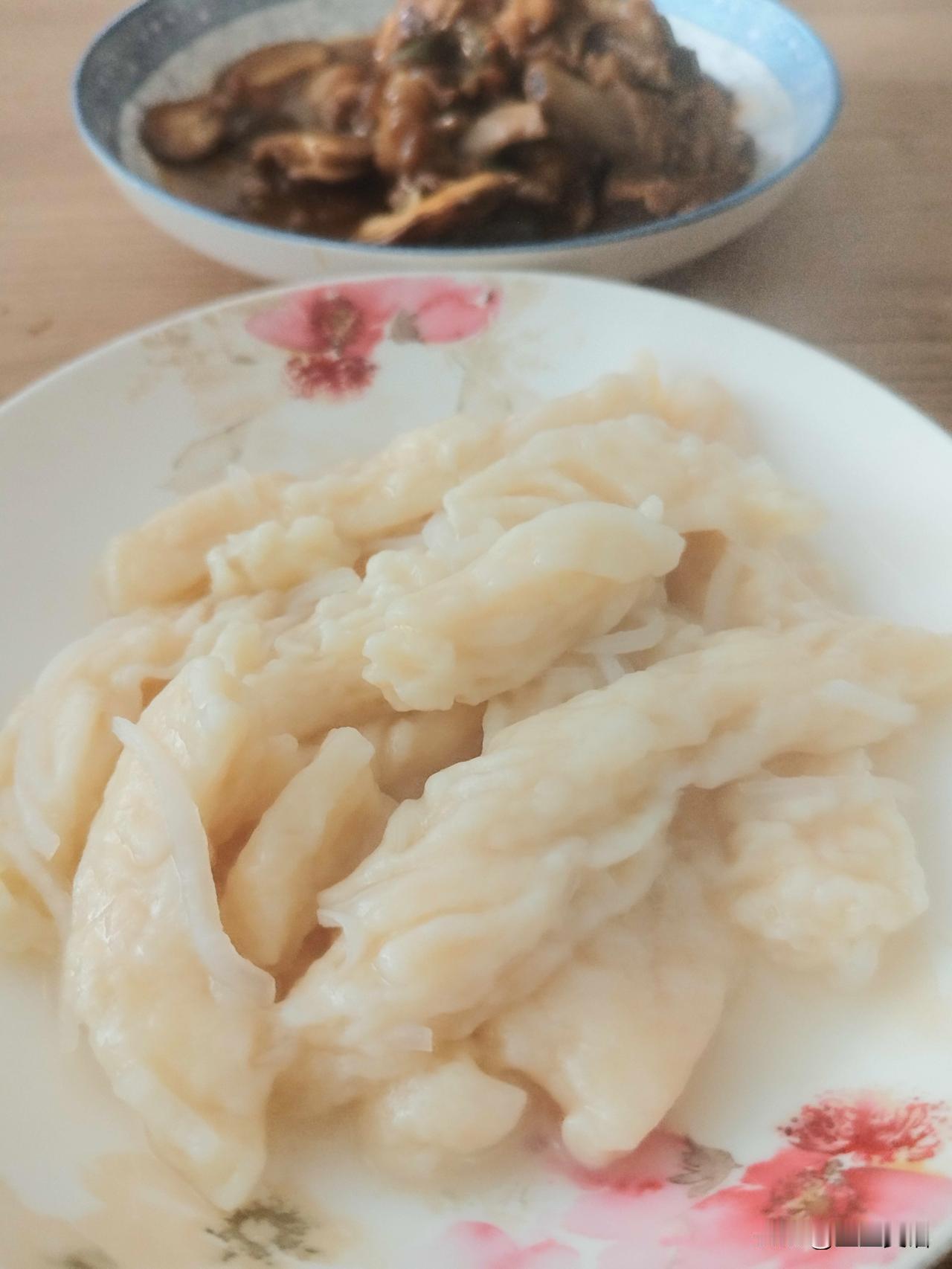 寒冬腊月,吃白萝卜条面,搭配香菇炒鸡腿,简单又美味[捂脸]