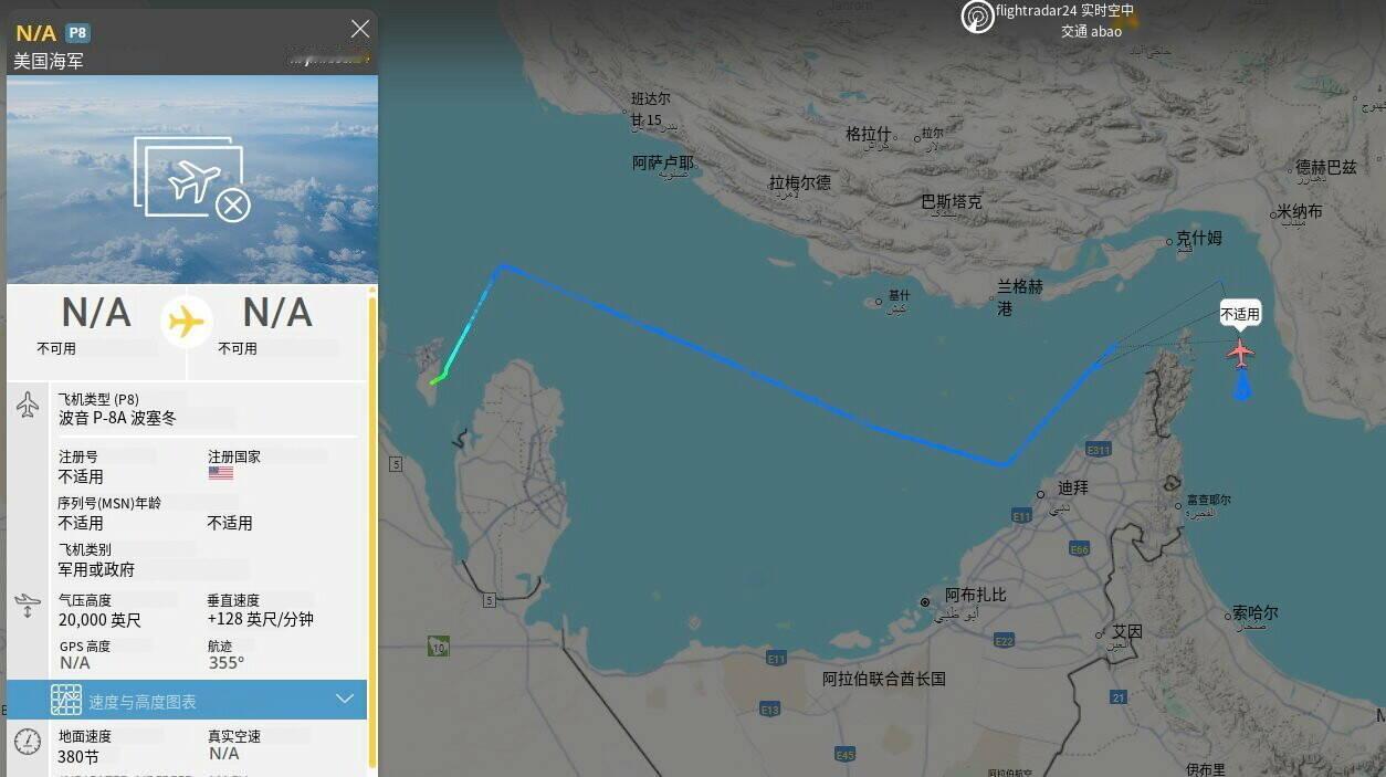 新闻快讯——观察到美军侦察机持续在霍尔木兹海峡开展巡逻活动。 伊朗方面很可能采