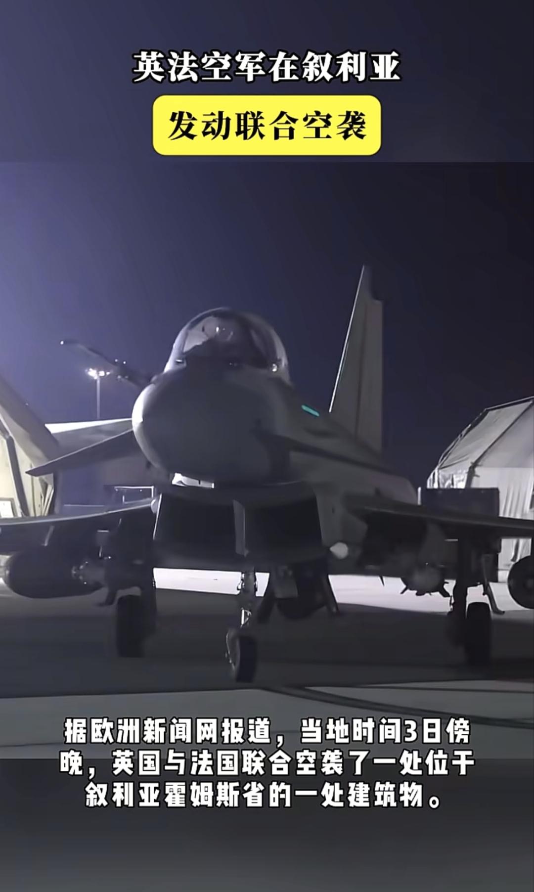 什么情况 英法联军又开打了 这哥俩还真的是好兄弟啊 干啥活都喜欢一起行动 当地时间3日 英法空军联合空袭了 一处位于叙利亚霍姆斯省的一处建筑物 就是那个被美国誉为文明进步的叙利亚 说起来 叙利亚也是现代 英法联军 经常光顾的一个国家 这哥俩 有事没事就喜欢去叙利亚 空袭一波