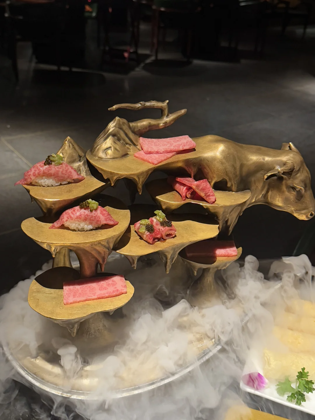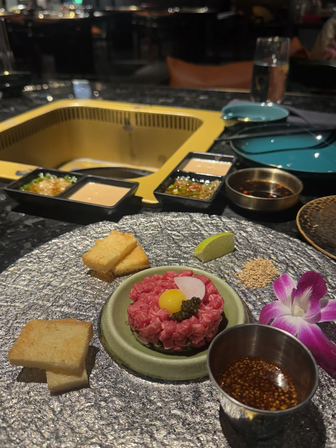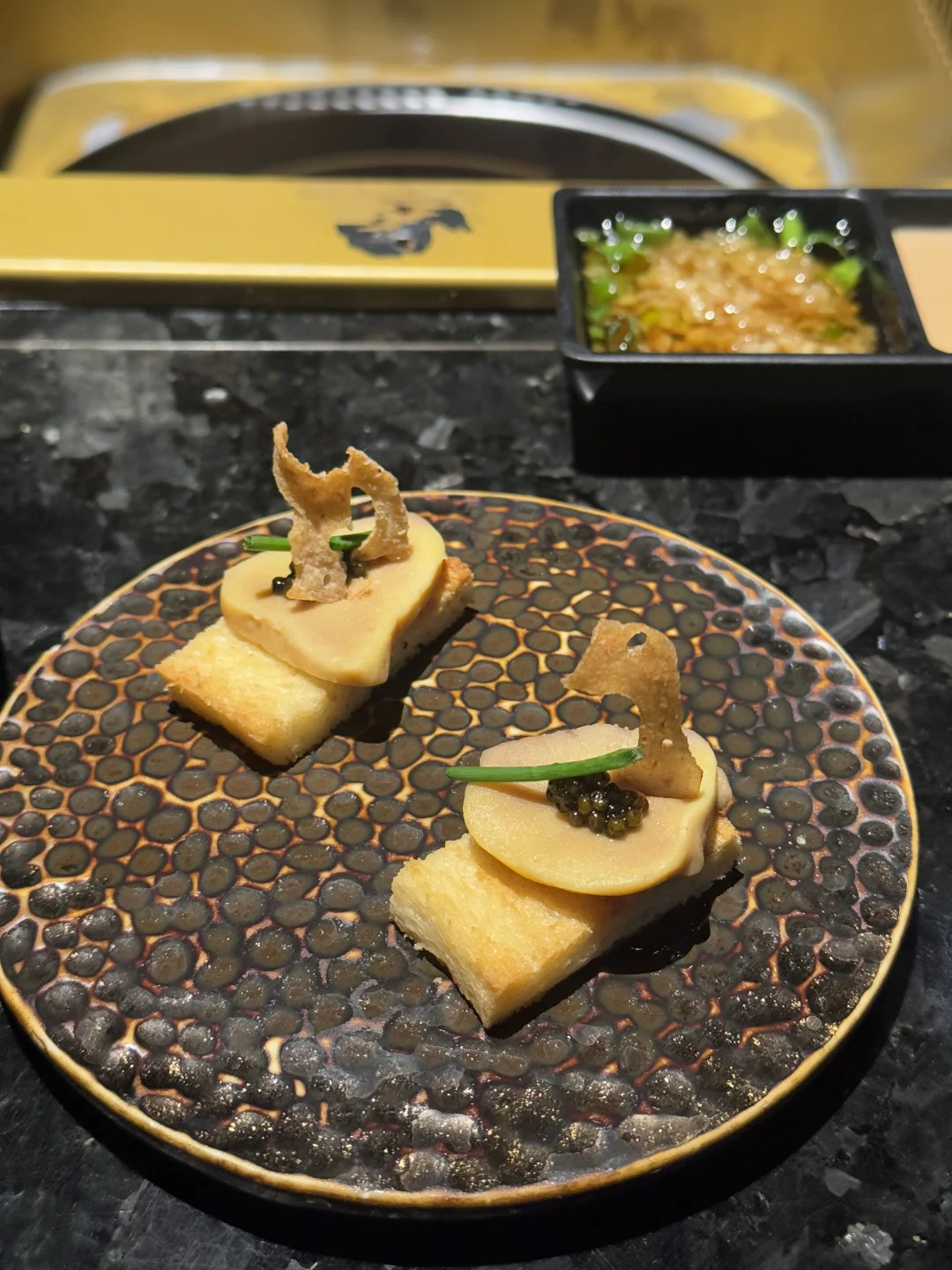【和牛宴拼盘】是另加的,和牛鱼子酱卷和寿司都不错,牛舌和short rib会烤一下