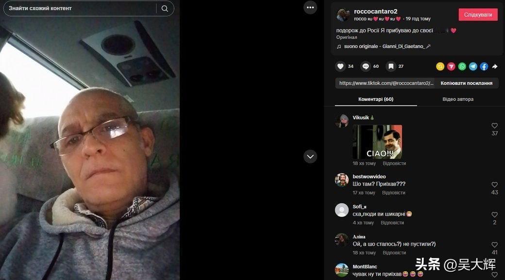 乌边防部门禁止意大利“普京粉丝”罗科入境 三年禁令生效 乌克兰国家边防局代表杰姆琴科证实,乌边防局拒绝一名名叫罗科的意大利“普京粉丝”入境,并对其下达了为期三年的入境禁令。 网友们已扒出罗科的TikTok账号,纷纷在他的视频下留言评论。他在最新发布的帖子中称,自己原本计划取道乌克兰前往俄罗斯——如今这趟行程已然泡汤。