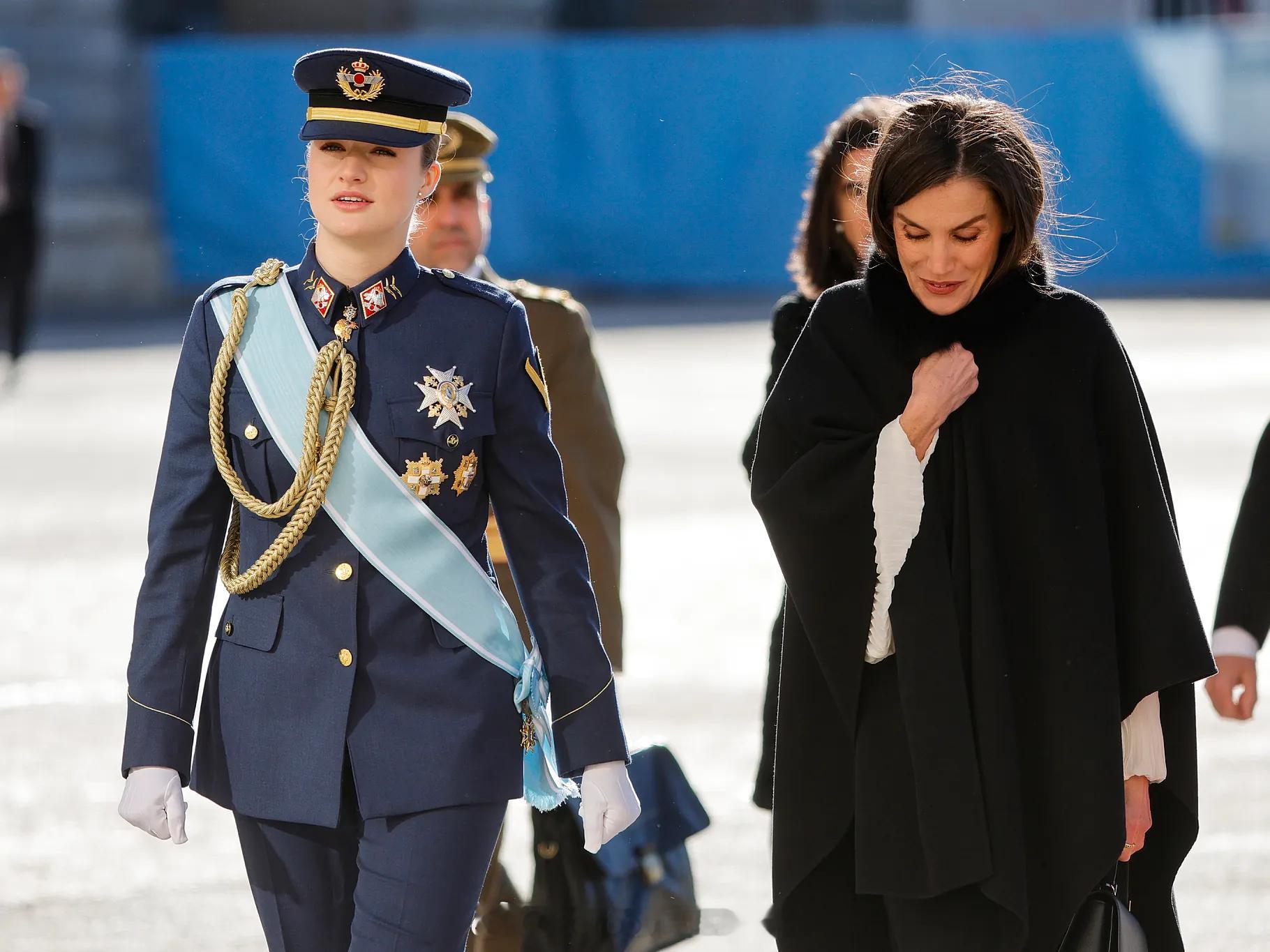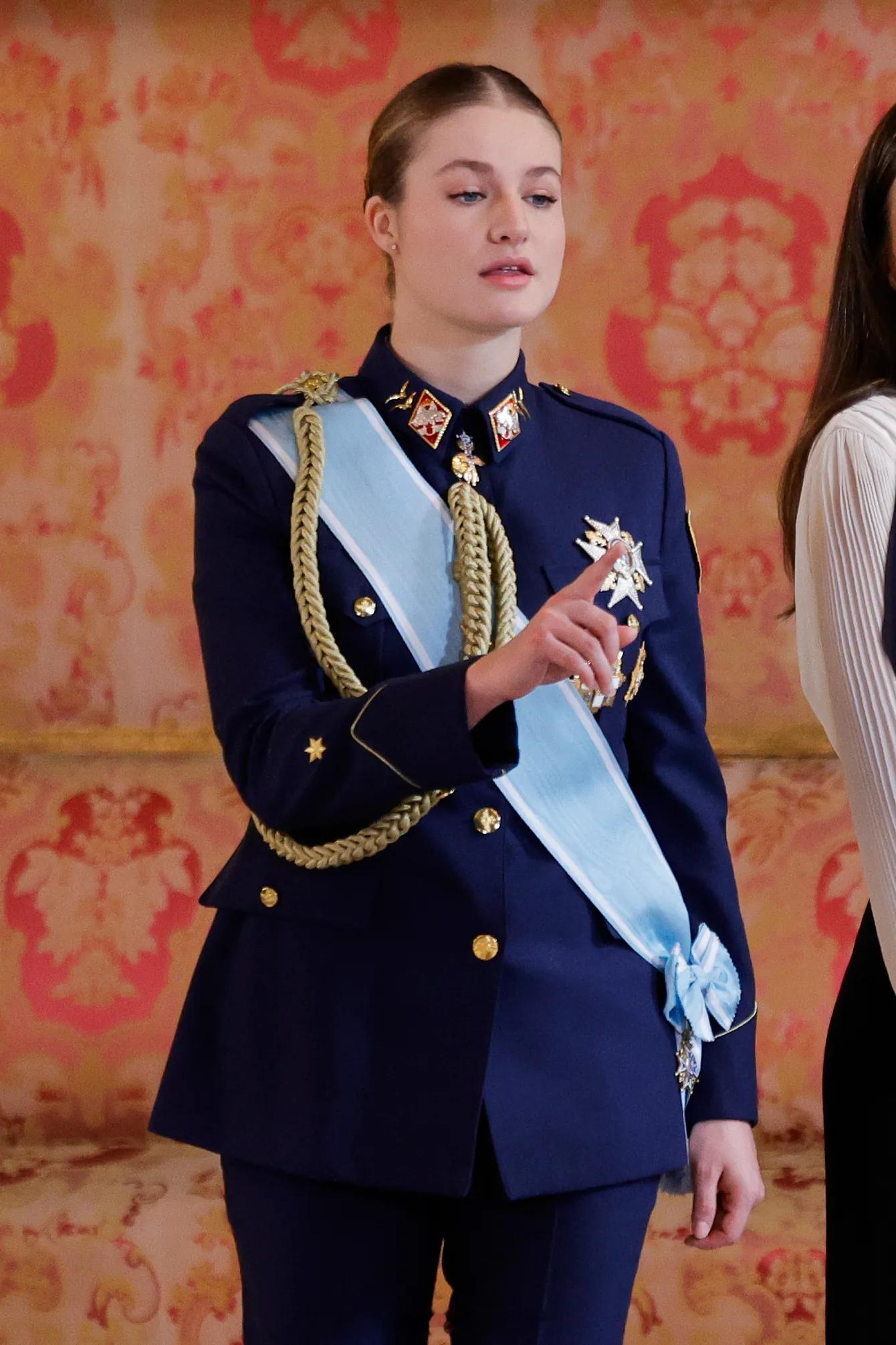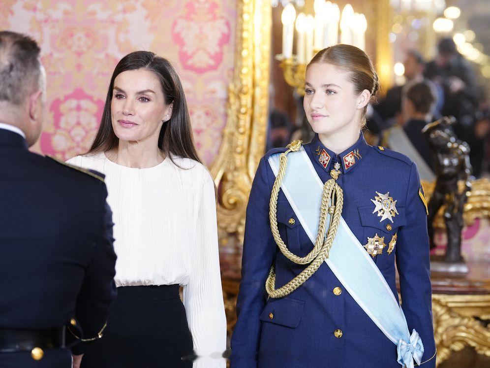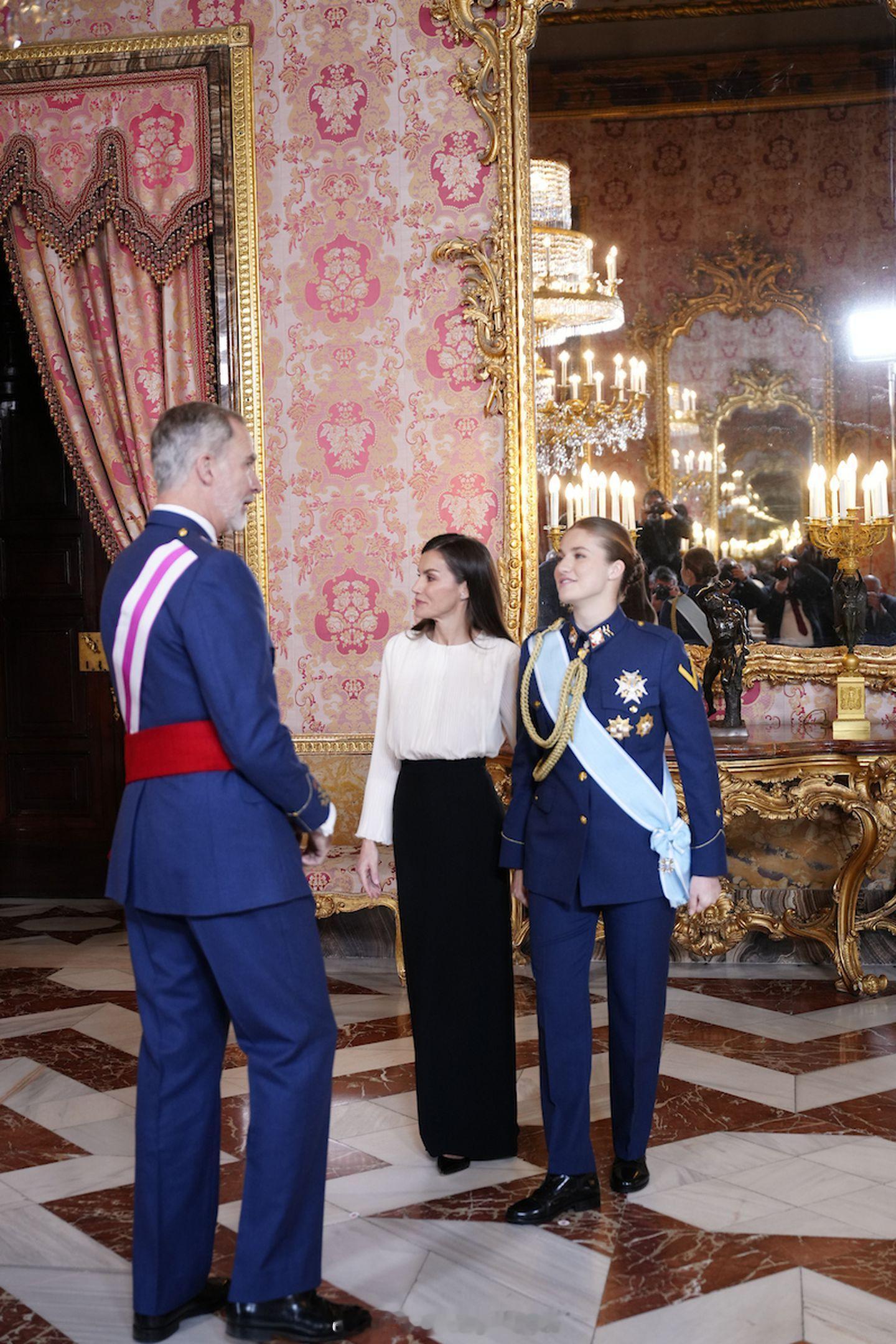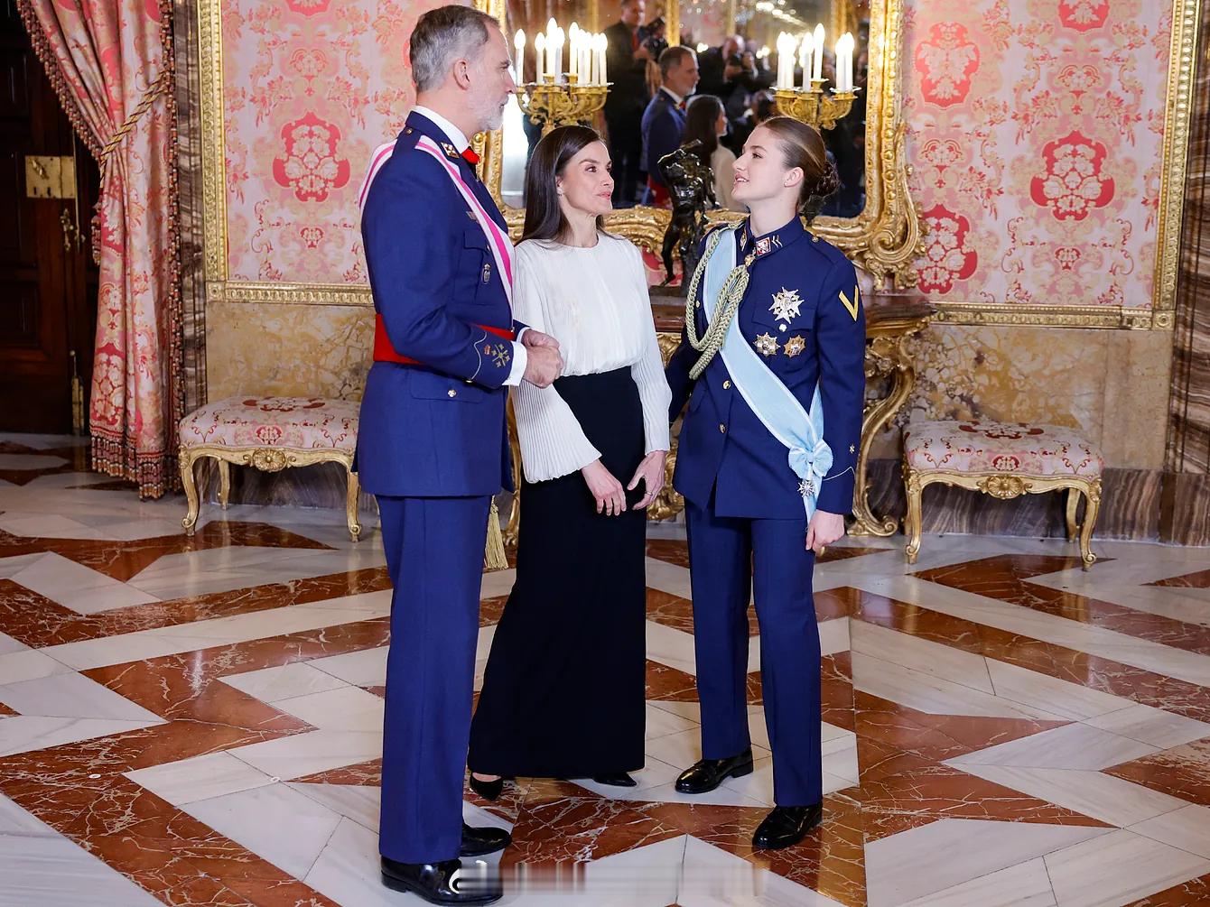 西班牙王室 1月6日,西班牙国王、王后和王储出席在马德里皇宫举行的Pascua Militar仪式,活动包括室外(军械库广场)的奏国歌+检阅,室内的接待(握手)和新年讲话。莱昂诺尔公主凑齐海陆空皮肤,佩戴的勋章包括金羊毛勋章,卡洛斯三世绶带+星章(最大的),以及在AGM和ENM获得的军事功绩勋章,帅帅哒诺拉!