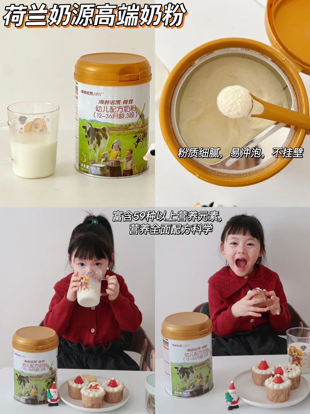 ✅来自荷兰黄金奶源,在制奶工艺方面就有125年,淡淡奶香味加在辅食里,拿捏住不爱吃饭挑食的宝宝,原罐进口喝起来很安心,而且粉质细腻,容易冲泡不挂壁沉淀。