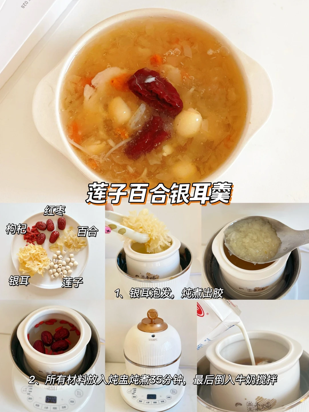 🥛牛奶红枣炖银耳