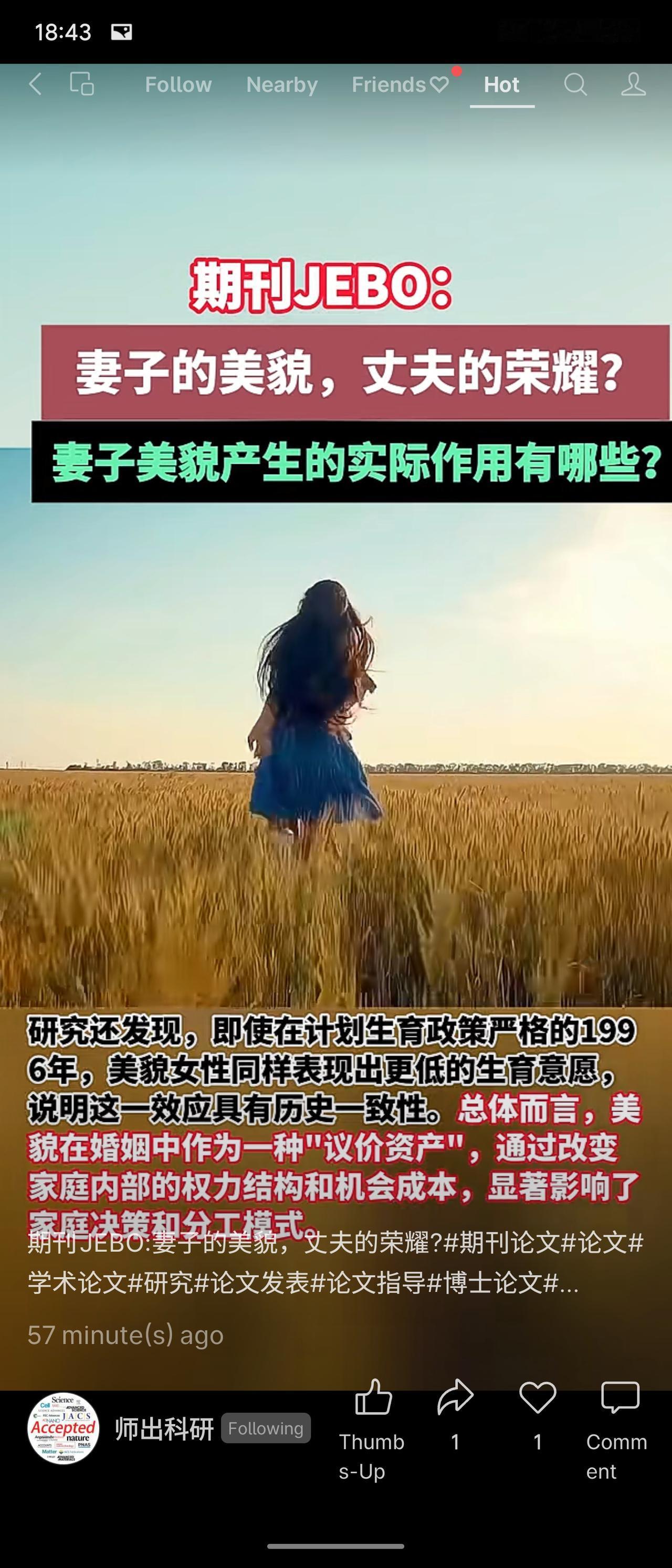 该研究基于中国家庭数据分析发现,妻子美貌会显著减少生育数量(平均少生0.43个孩子)。其主要通过提升女性在家庭中的议价能力与增加生育机会成本两种机制实现,表明美貌在婚姻中作为一种“议价资产”影响了家庭决策。