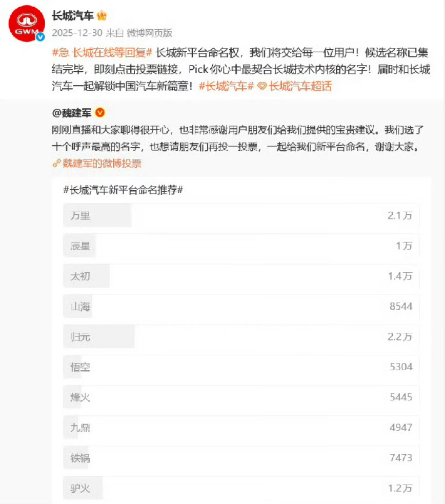 长城汽车新平台命名归元