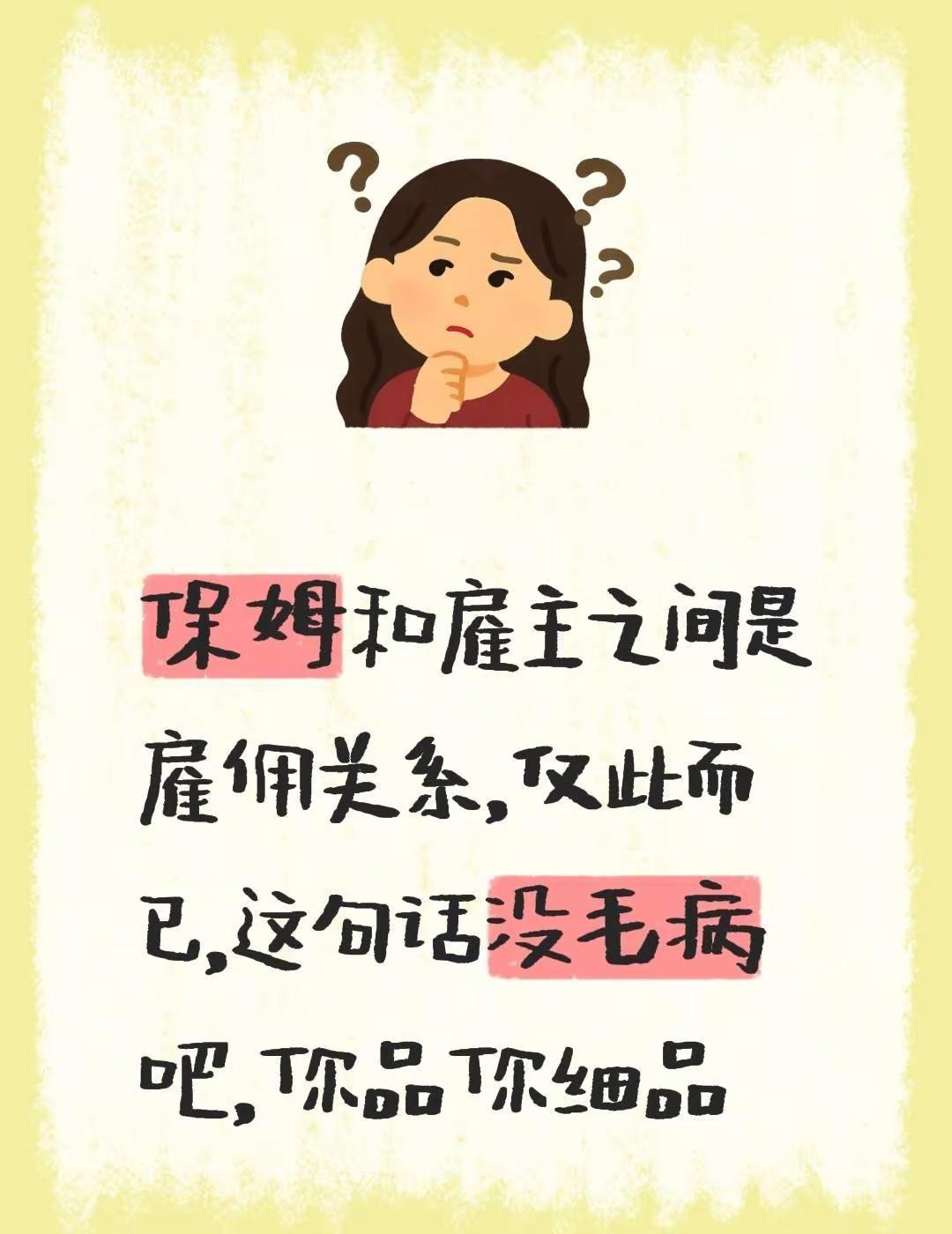 我回复了@໑ຼₒ₂6ღ💞新的开始💞 ☆ 的评论:保姆和雇主之间是雇佣关系,仅此而已,这句话没毛病吧,你品你细品