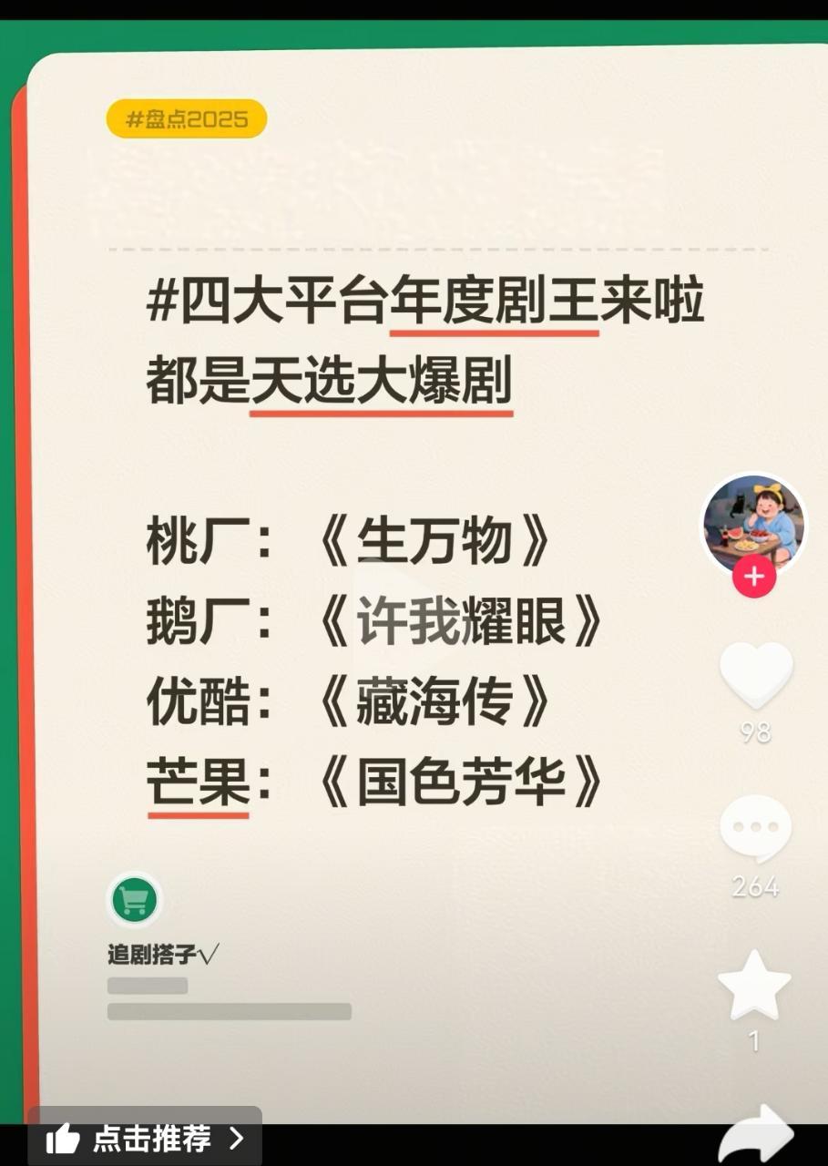 2025年各平台达标剧 真的是无论什么榜什么年终盘点,都绕不开大爆剧藏海传!