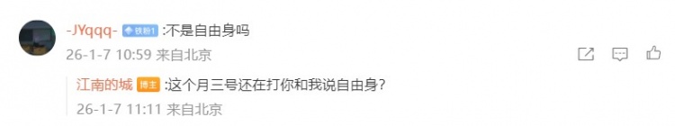 一名网友谈及该球员现在的身份,@江南的城回复:“这个月三号还在打你和我说自由身?”