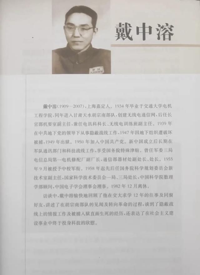 1949年,被判10年的地下党员戴中溶醒来后,惊奇地发现,监狱中空荡荡的,看守们都不见了,难以置信的他就这样重获自由! 戴中溶这人,出生在1909年的上海嘉定,那时候家里条件还不错。他上学时选了交通大学电机工程系,专攻无线电技术,1934年毕业就直接进了国民党军队,在甘肃天水那边帮胡宗南建无线电通信网。工作干得挺卖力,很快就升了职,当上长官部机要室副主任,还兼着电讯科科长。每天处理那些机密电报和通信事儿,胡宗南对他信任得不行,常把重要军事文件扔给他管。这位置让他接触到不少核心东西。 说起来,戴中溶从1938年开始,就在胡宗南身边干了9年地下党员的事儿。大学时候他接触过进步思想,对国民党那套腐败玩意儿看不惯,就秘密加入了中国共产党。白天他装成国民党军官,出入指挥部,晚上就把情报传给延安。情报包括胡宗南的部队布置、电台密码,还有进攻延安的计划啥的。他帮延安躲过了好几次危机,比如截获并破解国民党“闪击延安”的密电,及时送出去,避免了党中央大麻烦。他的贡献大得很,但伪装得滴水不漏,没人怀疑过他。 西安事变那会儿,戴中溶负责通讯保障,帮国民党建了高效的无线电网,这让他在军队里站稳脚跟。胡宗南叫他“西北王”,对他赏识有加,戴中溶借这个机会,收集情报更顺手。潜伏期间,他没出过岔子,能力强,工作出色,所有人都觉得他就是个忠心耿耿的国民党军官。情报工作直接影响了延安安全,避免多次进攻行动。 1947年,出事儿了。中共西北情报网负责人王石坚被抓,在狱里扛不住酷刑,就叛变了。叛变后,他供出好多同志,其中提了戴中溶的名字。同时,敌人查到戴中溶的妹妹戴中展是共产党员,两人常有书信来往。保密局的特务根据这些点,就认定戴中溶“通共”。国民党那边,通共是重罪,他们宁可信其有,这事儿还捅到蒋介石那儿,蒋下令抓人审问,要是确认就杀头。 调查的时候,敌人发现王石坚只提了戴中溶名字,没明确说他就是共产党。兄妹的信件看着像普通家书,没情报痕迹。没有硬证据,他们不敢乱来,因为戴中溶是胡宗南的心腹。胡宗南多次替他说情,求情营救。要是贸然动刑,得罪了胡宗南,谁都吃不消。就连保密局局长毛人凤,也不敢轻易招惹西北王胡宗南,其他小特务更别提了。最终,戴中溶被判了10年有期徒刑。 判刑后,戴中溶先关在南京羊皮巷监狱,那地方专门关政治犯。他原来是机要室少将副主任,胡宗南对他信任,还多次帮忙,所以看守不敢对他下狠手。证据不足,说不定很快就放了,看守们担心以后倒霉,就没用严刑拷打。待遇比一般犯人好,住单间,吃得不错,不用干活,看守态度也客气。跟其他地下党员比,他算运气好的。 1948年底,解放战争打得国民党节节败退,南京监狱系统开始乱套。他们就把部分政治犯转到杭州西湖边的浙江省陆军监狱。戴中溶也转了过去。那监狱本来犯人多,他去后,每天早上和中午,敌人拉人出去枪决。戴中溶因为是胡宗南亲信,只判了10年,不用担心被拉走。1949年,狱里就剩10多个犯人,这些人是不能随便杀的。 国民党打算把他们送去福建、江西关着,但交通断了,就继续留在杭州。看守们多次给南京国防部发电报,问怎么处理这些人,可那边没回音。1949年4月底,解放军大军压近杭州,看守们知道大势已去,无心再守,就都跑了。跑的时候,没接到杀人命令,就打开牢门,扔下监狱走了,留下个空荡荡的地方。 5月1日,戴中溶醒来,发现牢门开着,监狱里没人,看守全不见了。他壮着胆子走出去,看监狱空空荡荡,只剩几个犯人。这事儿让他觉得太不可思议,就这么重获自由了。确认没看守后,他离开了监狱。 2天后,杭州全面解放。戴中溶和其他幸存者去找杭州军管会,那儿有个干部顾德欢,是戴中溶的老同学,能证明他的身份。顾德欢是交通大学同窗,看到戴中溶后,帮他写信联系,组织上核实了他的经历和表现。戴中溶就这样回到了党组织。 戴中溶出狱后,1950年正式加入中国共产党。新中国成立,他长期在军队通讯部门工作,继续发挥他的无线电专长。情报战线上的事儿,没啥传奇,就是谨慎收集有用情报,完成组织任务。他的一生,低调务实,没出过风头,但贡献实打实。