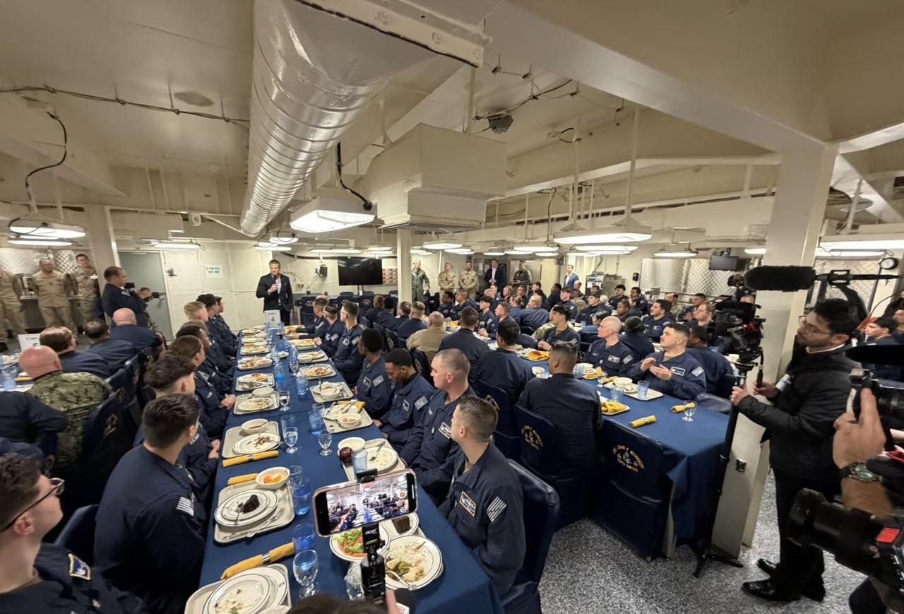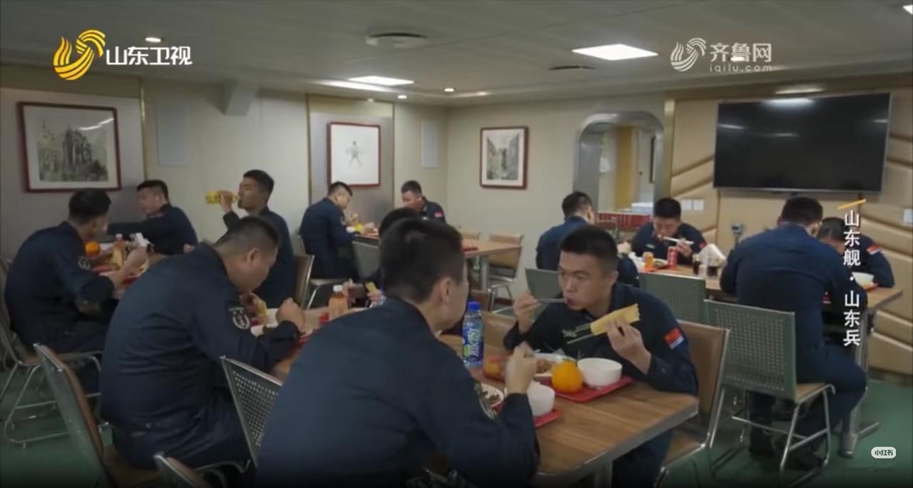 中美国航母,餐厅对比! 美国的是福特级“肯尼迪号”航母,而中国的是山东舰。 画面分别来自五角大楼记者和山东卫视报道画面,从用餐舒适度来看,肯定是山东舰吃起来更舒服,猛地一看美国的航母餐厅看起来就是一个大型食堂,而山东舰则可以实现分区用餐。 另外,美国这个非常不生活化,大量的摄影师都在,加上整齐划一的妆容,必然是准备好的,而中国的则是平常画面。