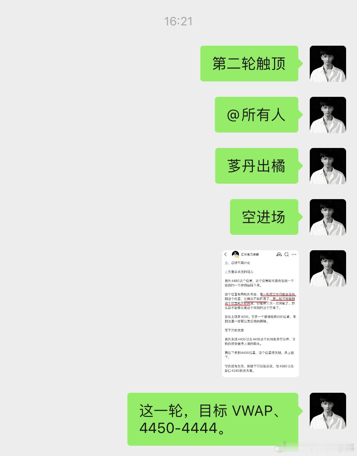 三轮走势,在中午的时候就已经提醒给各位了。依旧是 4480 的压力,依旧是 4450-4444 的底部,来回做了两次了,静待第三轮的结果。