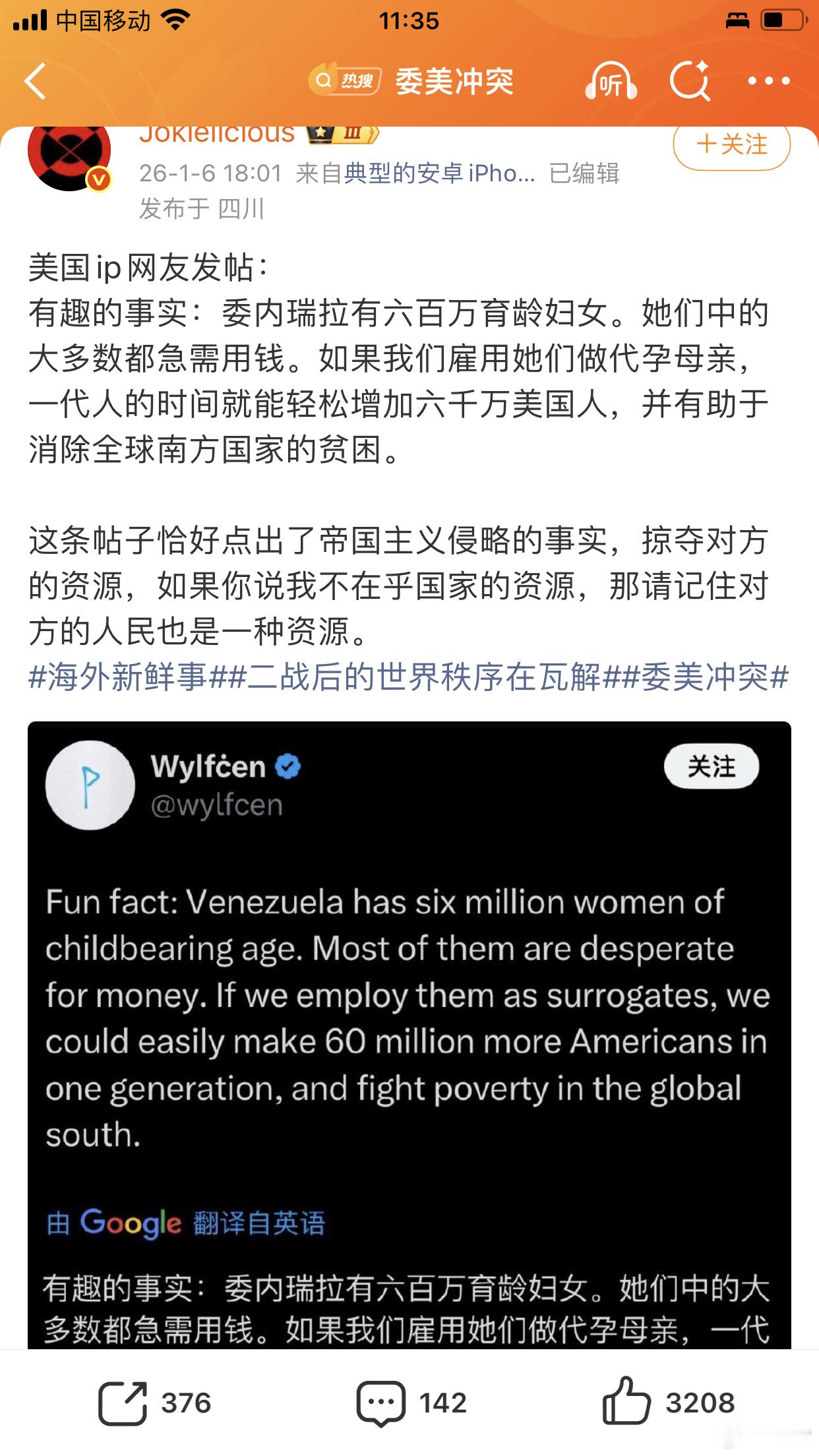 水均益:美洲是作为捕猎者美国的美洲连连看,面对残暴捕食者,里应外合,献祭马杜罗。 这似乎有迫不得已,似乎为了保全国家,但实际上,出卖巴杜罗的政府和军队,简直是就是外来的军阀,就好像一百年前的印度支那,殖民军阀法国,面对日本咄咄逼人,没有任何底线的退让,一直到欧洲、远东全部覆盖。没有什么主权,其实也不是绥靖,就是讨得特朗普欢心,纸醉金迷能过一天是一天,尤其是这个马杜罗非常可恨,还敢学特朗普跳舞,这是对美州捕猎者的具有时代感的社交媒体轻蔑和大不敬!斩首行动!