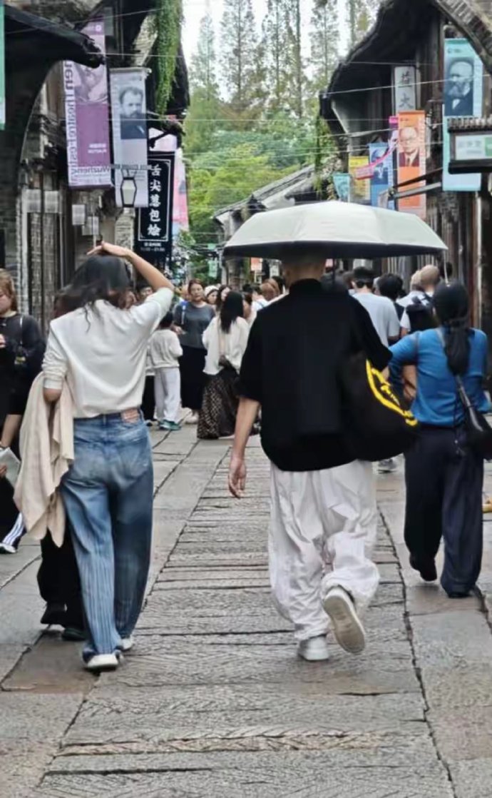 孙红雷和妻子王骏迪逛街,比老婆矮显娇小,55岁不服老打扮很招摇