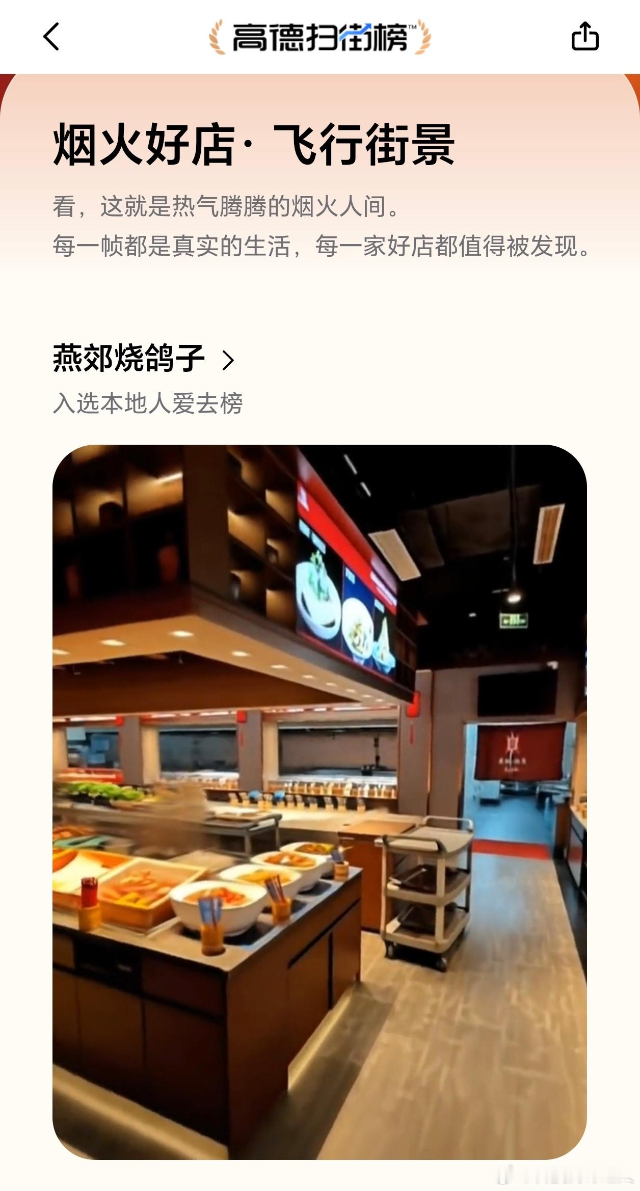 高德向100万小商家免费开放飞行街景这个好,每次我找商家都会点开信息页去看照片,环境太差或者看起来卫生不行的就pass,但是有些商家是没放照片的,偶尔踩雷也是没办法。现在居然能沉浸式俯瞰店内外环境,连停车位、包厢布局都看得明明白白,基本不用怕踩坑。才上线100天就有6.6亿用户、86万商家入驻,还带火了一大批小店,订单和营业额暴涨,我已经用它规划了周末行程,实景导航体验感拉满,真心推荐给爱探店的朋友~