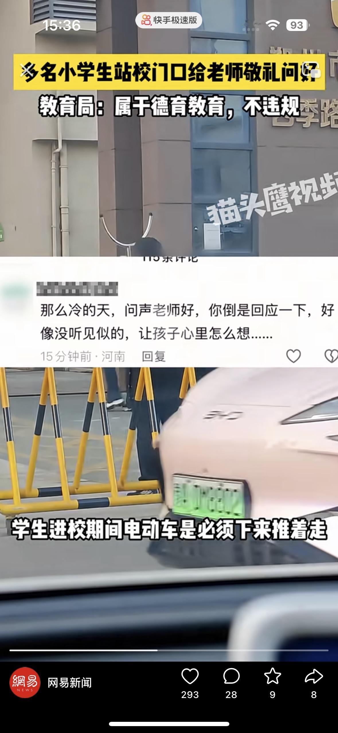 到底是体现了尊师重道还是高人一等的优越感呢? 郑州一所小学火了!昨天早上体感温度零下十度,这个冬天最冷的一天。 在冬天的早上让学生们穿着跟服务员一样站在门口敬礼问候老师好,可老师们却无一人回应。孩子的敬礼干净又真诚,成了单方面的热情,学校回应说是让孩子们学会尊师重道,怎么感觉却变了味道呢? 这么明显的形式主义,学生们不在学校读书或者听课,反而轮流在门口迎宾